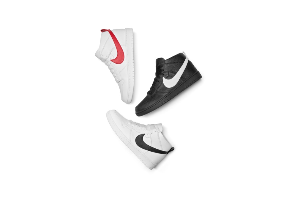 Per la nuova stagione Riccardo Tisci e NikeLab hanno creato la nuova NikeLab Dunk Lux Chukka x RT rivisitando le proporzioni delle Dunk Lux High x RT. La scarpa è ispirata dalla passione di Tisci per la cultura skate e basket degli anni 80 e viene proposta in tre varianti cromatiche. NikeLab Dunk Lux Chukka x RT ha ereditato dalla Dunk Lux High le proporzioni esagerate, come il maxi Swoosh. La scarpa è stata realizzata in vera pelle martellata per garantire resistenza e comfort; la soletta è in Lunarlon – un materiale tecnico che offre un’ammortizzazione morbida. La schiuma memory all’interno del collo trapuntato e della linguetta assicurano un fit confortevole. La tomaia senza fori, il bordo alto della conchiglia e il logo RT con swoosh Nike impressi sul tallone sono altre caratteristiche che contraddistinguono questo modello dalla versione originale.