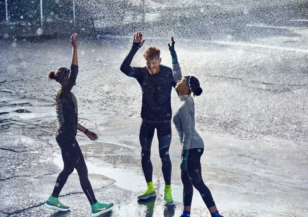 E ora le sneaker. Non c’è peggior cosa che correre con i piedi bagnati. L soluzione l’ha trovata Nike che ha progettato le LunarEpic Flyknit Shield con tomaia Flyknit realizzata in DWR (materiale resistente e impermeabile) rivestito di filati TPU e con una parte interna impermeabile per mantenere il piede caldo e asciutto. La suola, ispirata ai pneumatici delle auto, è scanalata per aumentare la superficie, respingere l’acqua e ottimizzare ulteriormente la trazione. Il collare alto poi assicura sostegno garantendo una calzata dinamica che enfatizza il movimento naturale dalla caviglia al piede.