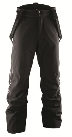 I pantaloni, leggeri ma caldi con sistema di articolazioni che agevolano i movimenti durante le discese, non più cavallo basso e gamba larga. La vita si alza aiutata anche da bretelle elastiche regolabili a prova di caduta, da abbinare a pull di lana dalle tonalità neutre o felpe con cappuccio.