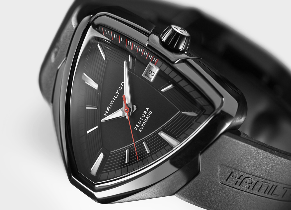 Tra i segnatempo più celebri nella storia del cinema, l’Hamilton Ventura è stato scelto personalmente da Elvis Presley e appare al suo polso nelle riprese del film Blue Hawaii del 1961. Dallo spirito visionario, come il re del Rock ’n’ Roll, viene presentato nel 1957 come primo orologio elettrico al mondo, riconoscibile dal design con cassa triangolare a forma di scudo.