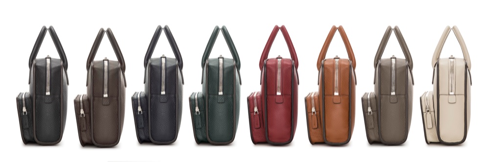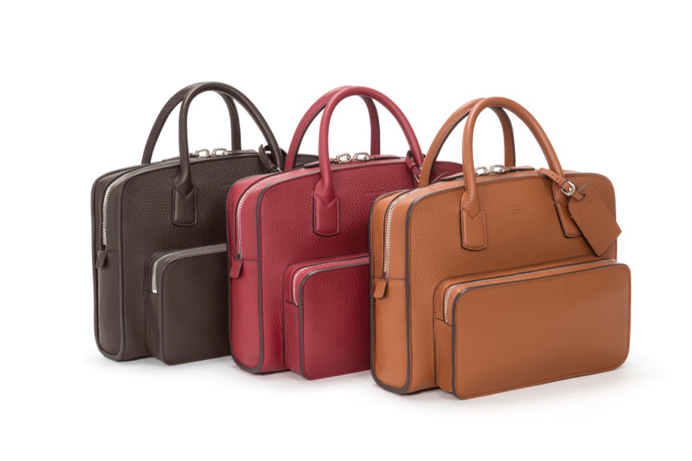 Tra le novità per a nuova stagione ecco poi la Private Bag di Giorgio Armani una borsa da ufficio o da viaggio se utilizzata come bagaglio a mano che unisce tradizione artigianale e funzionalità tecnologica. Segno distintivo è la costa alta un centimetro, opaca e scura, dipinta a mano, a volte a contrasto, che disegna forme semplici e precise. Le cuciture in tinta e in filo grosso, la scelta accurata delle pelli, dal vitello bottalato al coccodrillo, conferiscono un aspetto tattile e maschile. Gli interni, foderati di twill di cotone nello stesso colore delle coste, prevedono tasche e scomparti adatti a contenere tutta la tecnologia indispensabile all’uomo di oggi. Le nuance spaziano dal cuoio caldo al verde intenso, poi marrone scuro, nero, blu, tortora, avorio e rosso.
