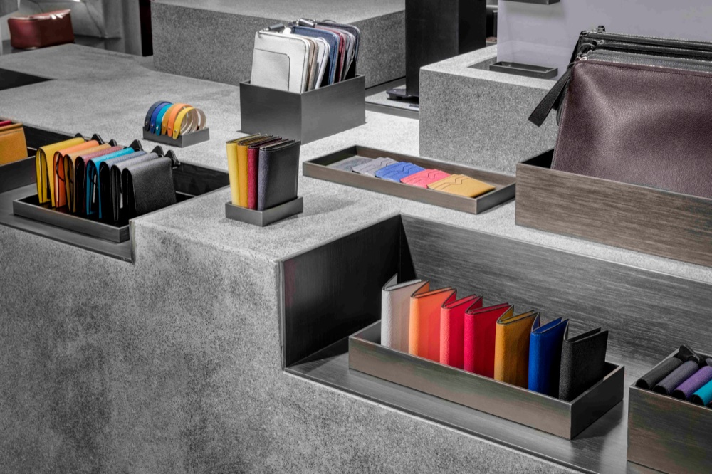Sono accessori che completano lo stile di un gentleman. Eleganti, minimal, colorati. La qualità delle materie prime e la maestria artigianale con cui vengono realizzati hanno la priorità. Lo sa bene Valextra che inaugura un nuovo corner. Questa volta all’interno di Harrods, tra i più prestigiosi departement store del lusso e della moda nel mondo. Lo spazio, situato al Lower Ground Floor, è stato realizzato dall’architetto David Adjaye, la cui visione progettuale include l’architettura, il master planning, l’arredamento e il product design, sia su piccola che larga scala. Un ambiente contemporaneo e scenico, in cui l’uso del cemento scanalato diventa una dichiarazione potente e insieme raffinata. Il corner è incorniciato da due pareti tridimensionali, caratterizzate dall’intersezione tra la superficie modulare e le nicchie lineari o asimmetriche che fungono da elementi espositivi, illuminati a led per valorizzare il prodotto. Al centro sorge un grande podio dalla struttura geometrica, dotato di scompartimenti su diverse altezze e contenitori su misura per la piccola pelletteria.