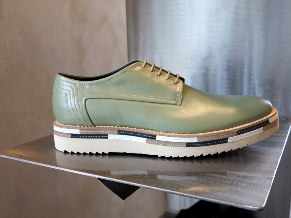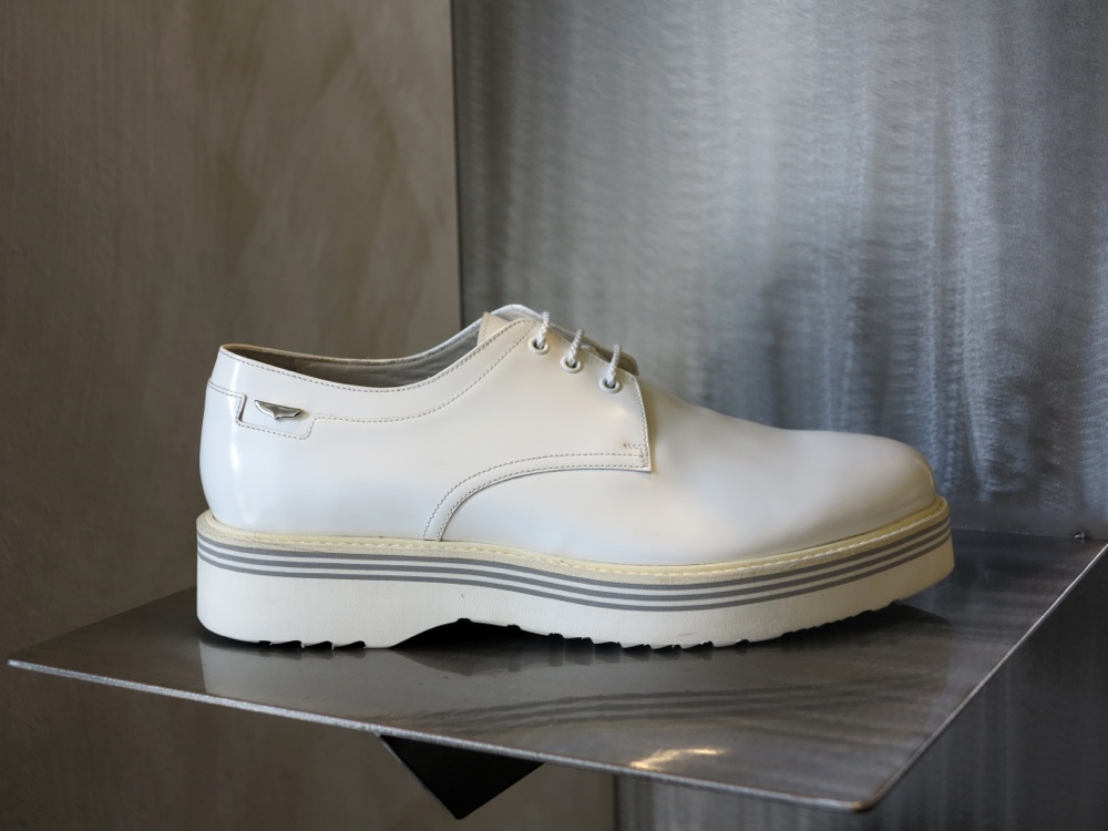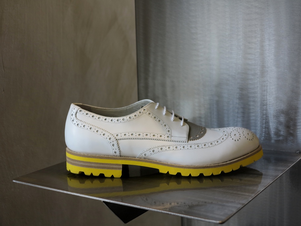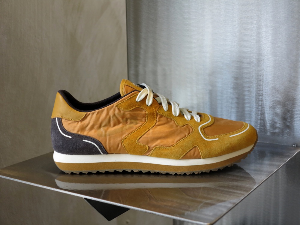 I pellami sono naturali. Cervo, cavallo, nabuk lavato e vitello abrasivato, trattato manualmente fino a creare un effetto vintage. I dettagli su suole ultralight e tomaie traforate o con impunture a vista sono fluo, a contrasto. Blu elettrico, giallo brillante, bianco avorio.