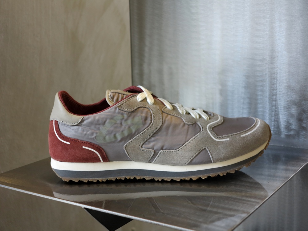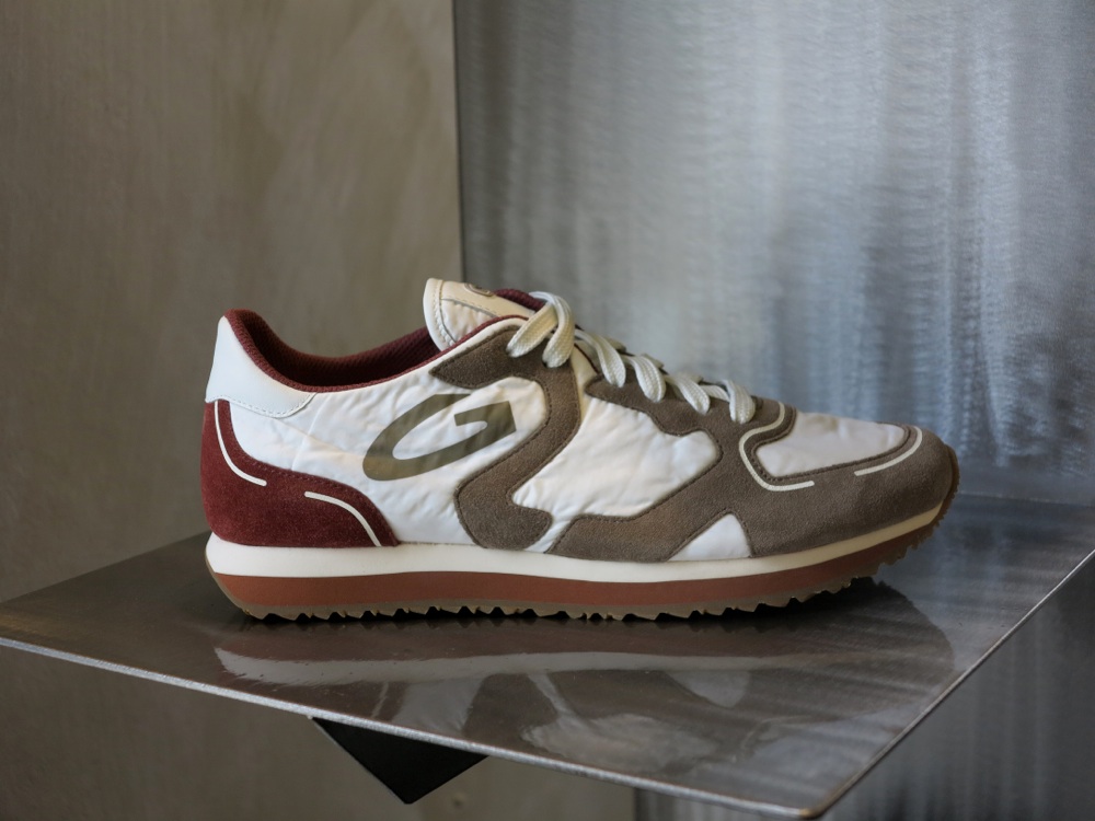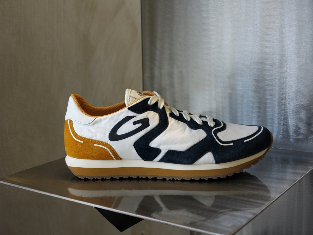 Le sneaker, invece, sembrano prive di peso. Destrutturate, leggere. Le tomaie della linea Guardiani Sport sono in nylon e suede stone washed con effetto sbiadito dal sole. Hanno i colori della corda, della sabbia delle spiagge della California con dettagli a contrasto blu notte, rosso fuoco o tortora. Si ispirano allo stile dei protagonisti di film iconici che rappresentano la cultura del surf, da Un mercoledì da leoni a Point Break.