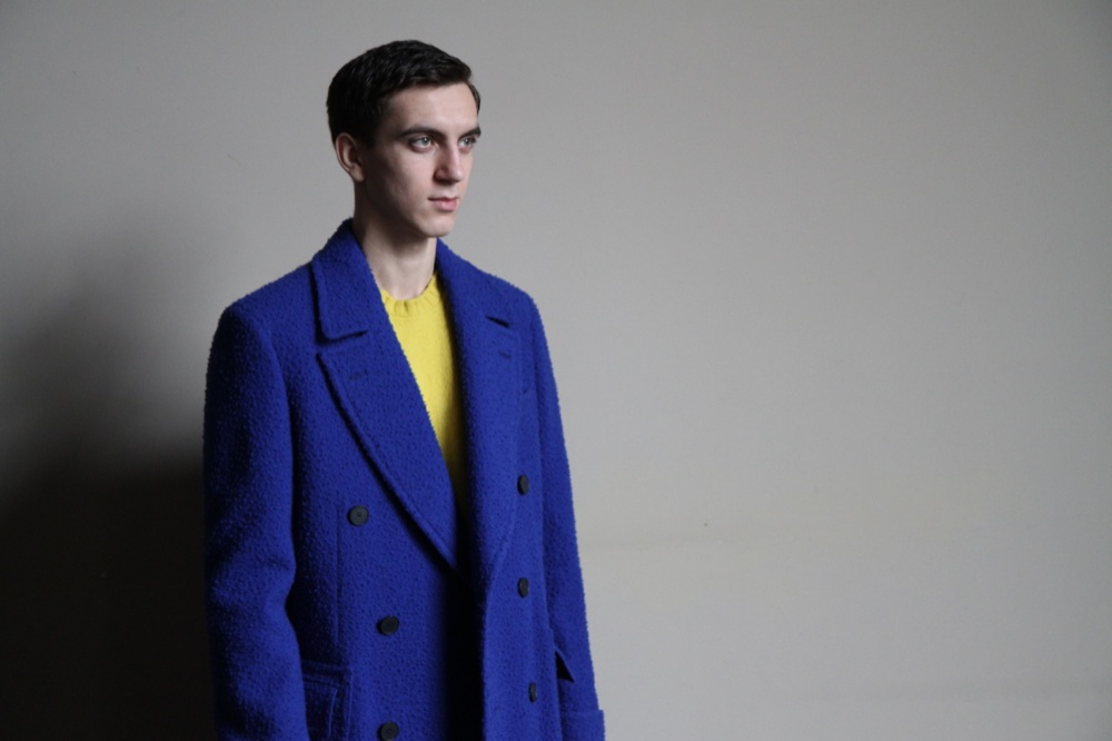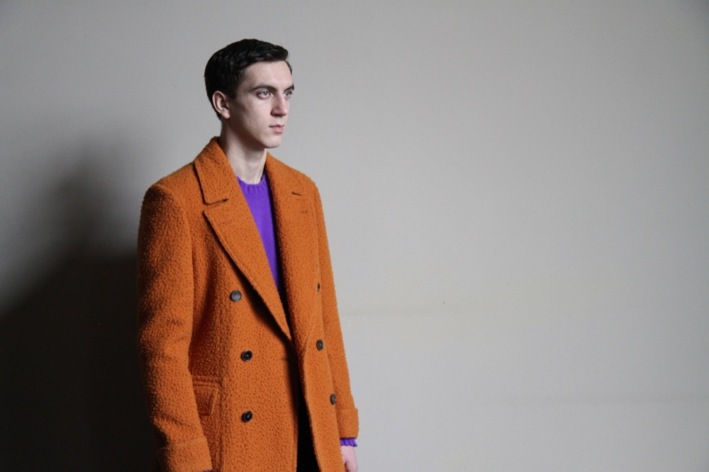 Da una parte Drumohr forgia cappotti doppiopetto con reverse a lancia in panno Casentino, un tessuto in lana follata e garzata utilizzato anticamente per confezionare le mantelle indossate da pastori e butteri maremmani. I colori sono colori vivaci e brillanti. Dal classico arancio, il più amato dai signori dell’alta società dell’Ottocento, al blu cobalto: da indossare con maglie garzate in cashmere dalle nuance a contrasto.
