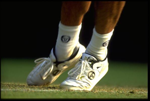 Sampras, sempre con lo sguardo fisso sulle scarpe, spalle ricurve, sorriso timido e quei pantaloncini che, se non per i colori almeno per il taglio oversize, senza dubbio nei primi anni della sua carriera si ispiravano alla moda del basket. ‘Chiesi, anzi quasi obbligai, il mio amico Sergio Tacchini a metterlo sotto contratto. Dopo John McEnroe o Jimmy Connors, Sampras sarebbe stato il suo miglior investimento. Lo fece, ma per un anno non vinse nulla e mi rimproverò’ sorride Clerici. Sono gli anni in cui l’Nba mette lo zampino nello stile del tennis: maglie extralarge con le spalle cadenti che Sampras deve continuamente sistemare dopo aver servito la prima di servizio, con quei bragoni che lo fanno somigliare a un ragazzino con i vestiti del padre ma pur sempre più sobri di quei color block portati dal suo eterno rivale Andre Agassi. Con i ciclisti fuxia indossati sotto i pantaloncini, fu il primo a entrare in campo in jeans con le scarpe fluo, colorate come svariate bandane che tentavano invano di tenere a bada un parrucchino indomabile che spesso gli copriva gli occhi truccati con la matita nera.