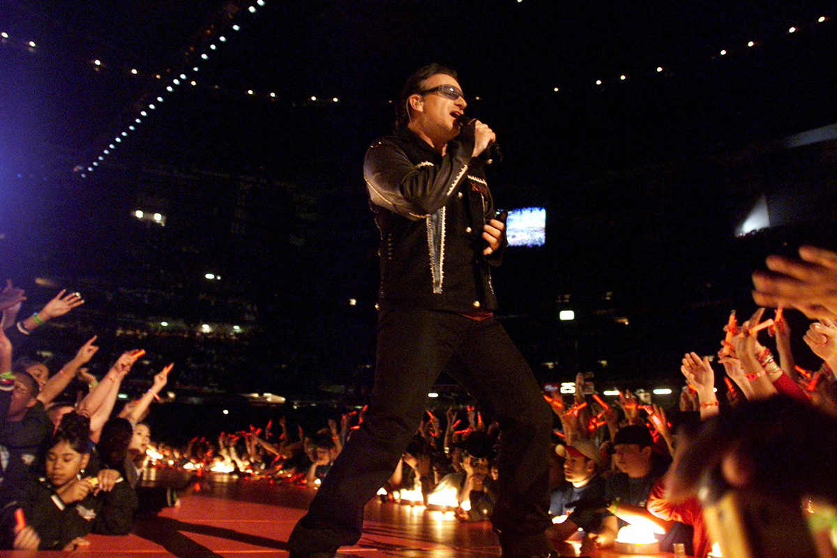 Ma c’è un’altra ragione per cui Bono mi è sempre piaciuto: come me, è un appassionato di vestiti che adora creare nuovi look. Dalla mise «abito argentato in stile palla a specchio e cappello da cowboy», ai tempi del tour Zooropa, fino alla splendida giacca laser, una vera immagine di controtendenza lanciata durante il 360° Tour (la tournée di 110 concerti da un capo all’altro del globo che è poi diventata la più grande della storia). Tre estati fa, in Europa, quando il tour ebbe il suo debutto, era la giacca più cool del pianeta. Lo so perché l’ho provata.