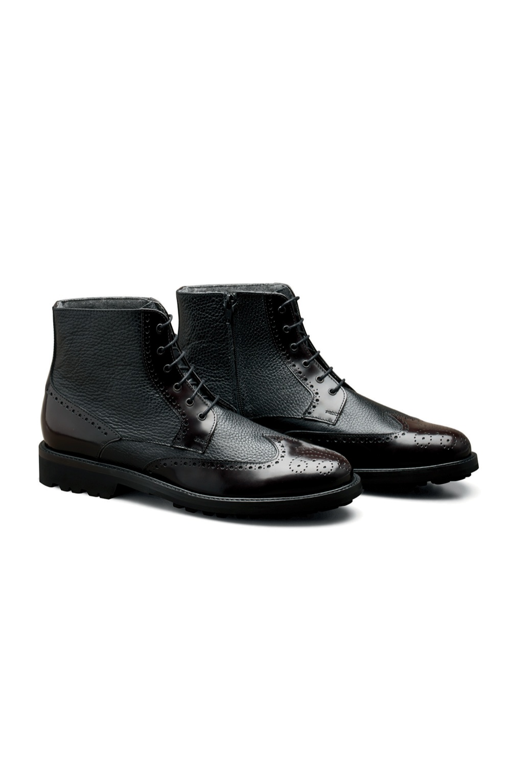Hanno tomaie con motivi traforati come le inglesi brogue di Grenson in pelle lucida con la punta sfumata a mano o le Paul Smith in pelle di vitello e suola a carro armato, ideali per i giorni di pioggia. Oppure hanno tomaie bicolor, come i polacchini di Corneliani, in pelle martellata e vitello spazzolato, che si chiudono lateralmente con una cerniera e hanno fodera in lana all’interno. Fratelli Rossetti invece combina due materiali: il vitello naturale trattato artigianalmente per sembrare anticato e vitello scamosciato, più morbido e leggero. Santoni, infine tinge il pellame del colore del vino, cuce la suola con la tecnica Goodyear che assembla tomaia e sottopiede attraverso una cucitura invisibile a lavoro finito e rivesta di cuoio la suola.