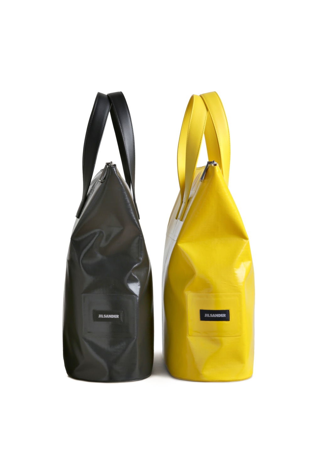 Anche la shopper di Jil Sander osa colori che non passano inosservati. Affianco al nero lucido, infatti, ecco un giallo limone che tinge il tessuto tarp, il materiale tecnico utilizzato per le tende da campeggio, impermeabile e resistente. Per la sua nuova Techocorme Amazona Loewe sceglie invece la pelle nera su cui applica patches colorati.