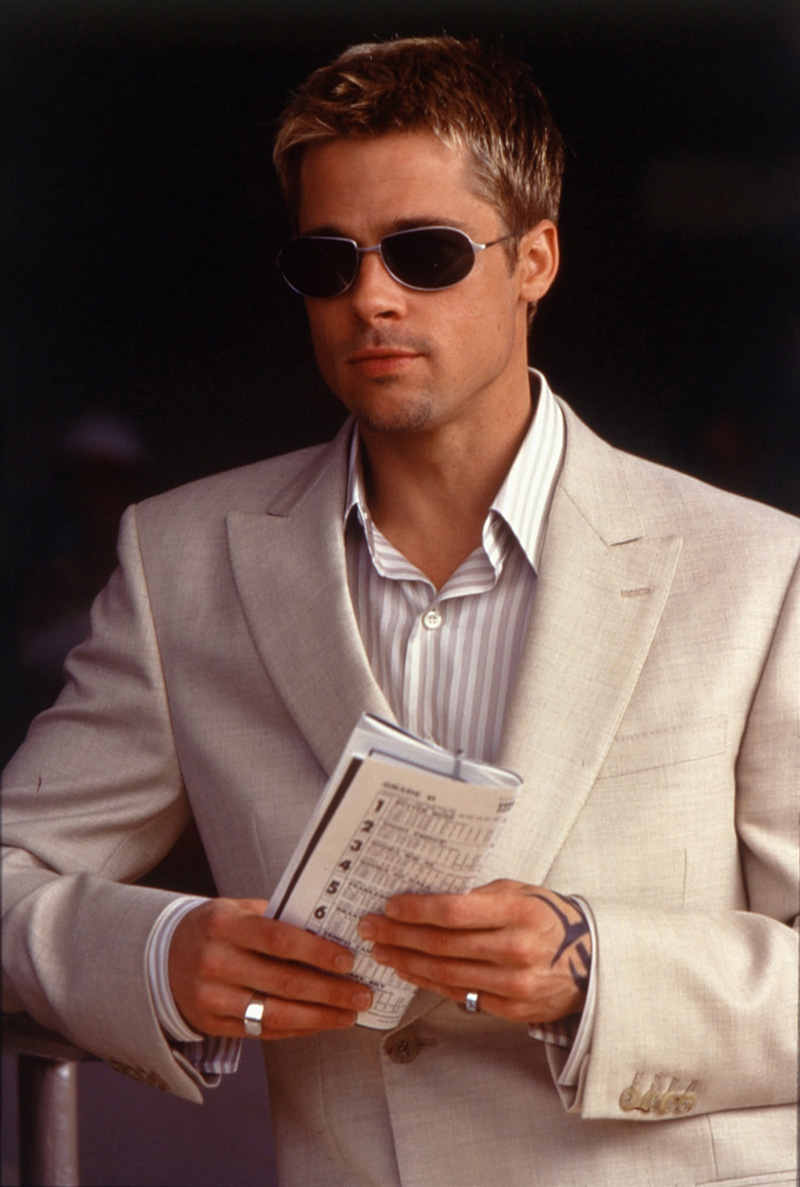 Ma l’evoluzione del look della star americana ha una storia che inizia due decenni fa quando, appena ventisettenne, interpreta l’autostoppista con jeans, cappello da cowboy e viso pulito in Thelma&Louise. I capelli invece, prima rockabilly style in Johnny Sued, si allungano e si lisciano incorniciando gli abiti settecenteschi dell’Intervista col vampiro, poi tornano a spazzola nel detective che indossava cravatta e bretelle in Se7ven e nell’assassino che colleziona abiti firmati e gadget di lusso in Mr. & Mrs. Smith. Barba e baffi seguono la vita dei personaggi interpretati: indimenticabili i baffetti in stile anni Quaranta in Bastardi senza gloria o il pizzetto abbinato a chioma impomatata di Jackie Cogan, il killer con trench di pelle di Killing Them Softly.