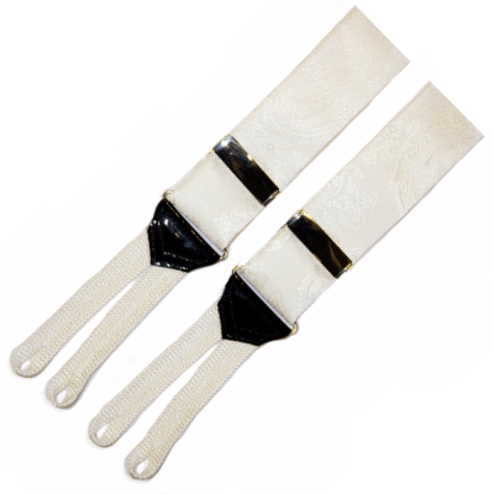La funzione principale delle bretelle, chiamate anche tiracche, è sostenere il pantalone a vita alta, facendo cadere la piega in modo impeccabile e slanciando così la figura. Ci sono occasioni in cui questo accessorio è d’obbligo, per esempio con il tight (o morning suite), l’abito formale per eccellenza: in seta o tessuto moiré (con la superficie percorsa da venature), bianche o grigio perla, rimangono sempre ben celate sotto il panciotto. Anche lo smoking classico vuole gilet e bretelle, preferibilmente nere, in alternativa alla più moderna fusciacca. Le tiracche eleganti hanno occhielli in tessuto che si agganciano ad appositi bottoni cuciti all’interno del girovita negli abiti formali.