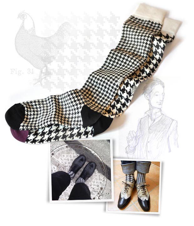 Lo stile è una questione di dettagli. E il guardaroba maschile, soprattutto quello formale, vive di suggestioni e citazioni inaspettate. Quelle che pongono l’accento su un materiale, una fantasia, un colore. Se lo sguardo cade sul calzino, il gentleman non può certo sottrarsi al vezzo di una stampa pied-de-poule o di un check a contrasto, sempre se l’abito che indossa è semplice, monocromatico e lascia scoperti i giusti centimetri della caviglia.