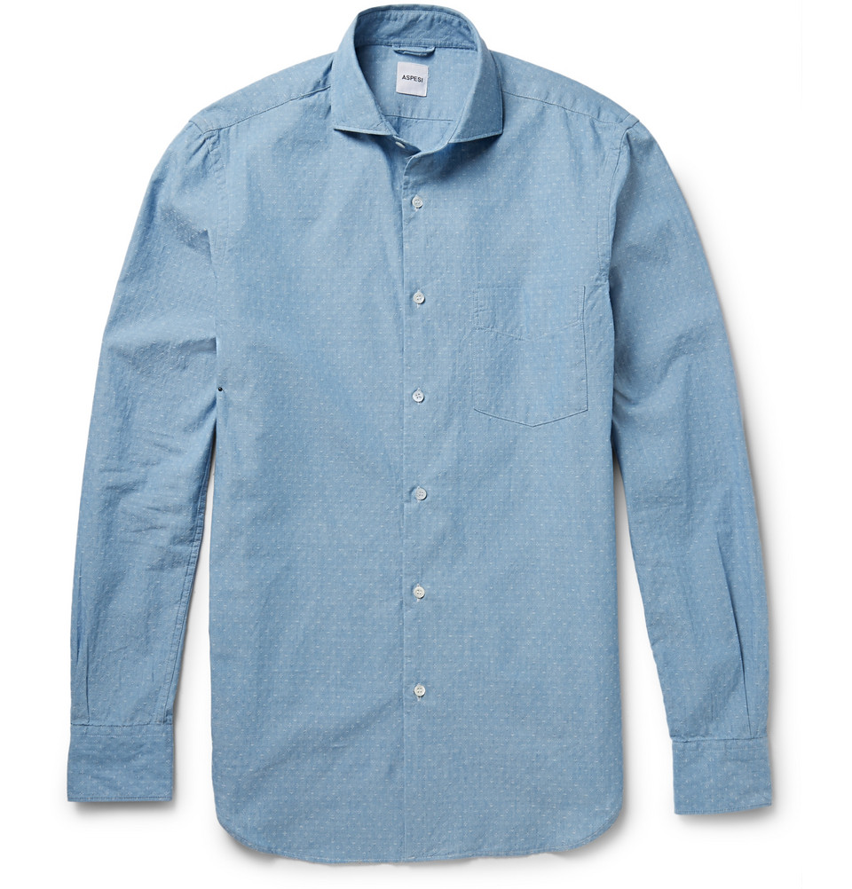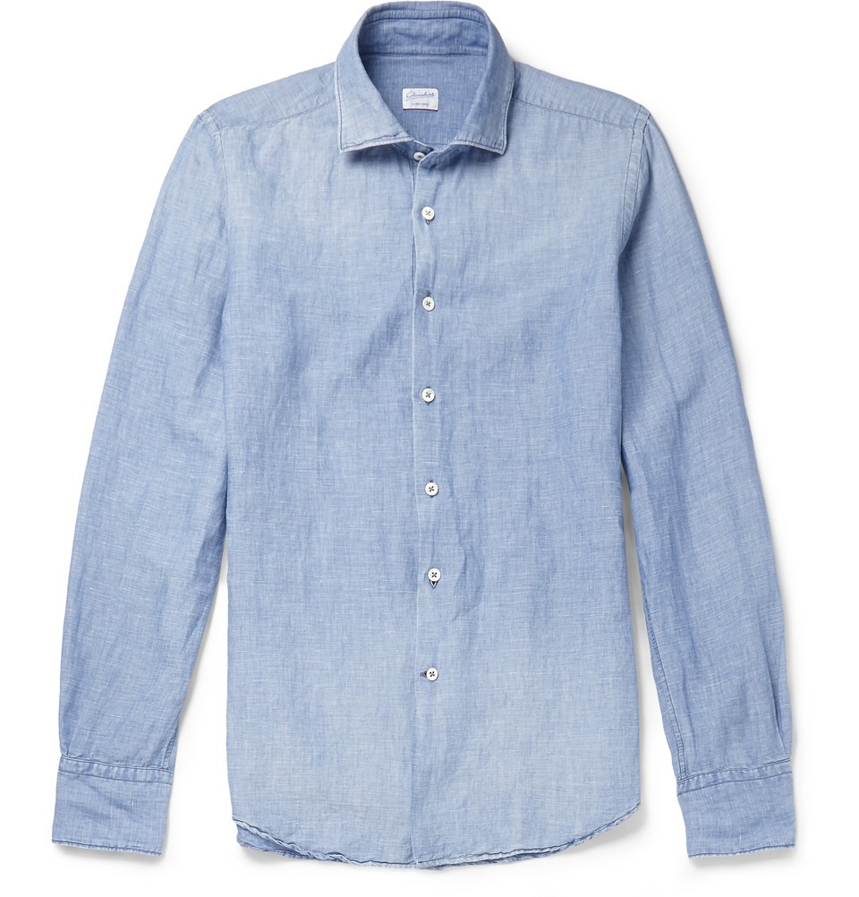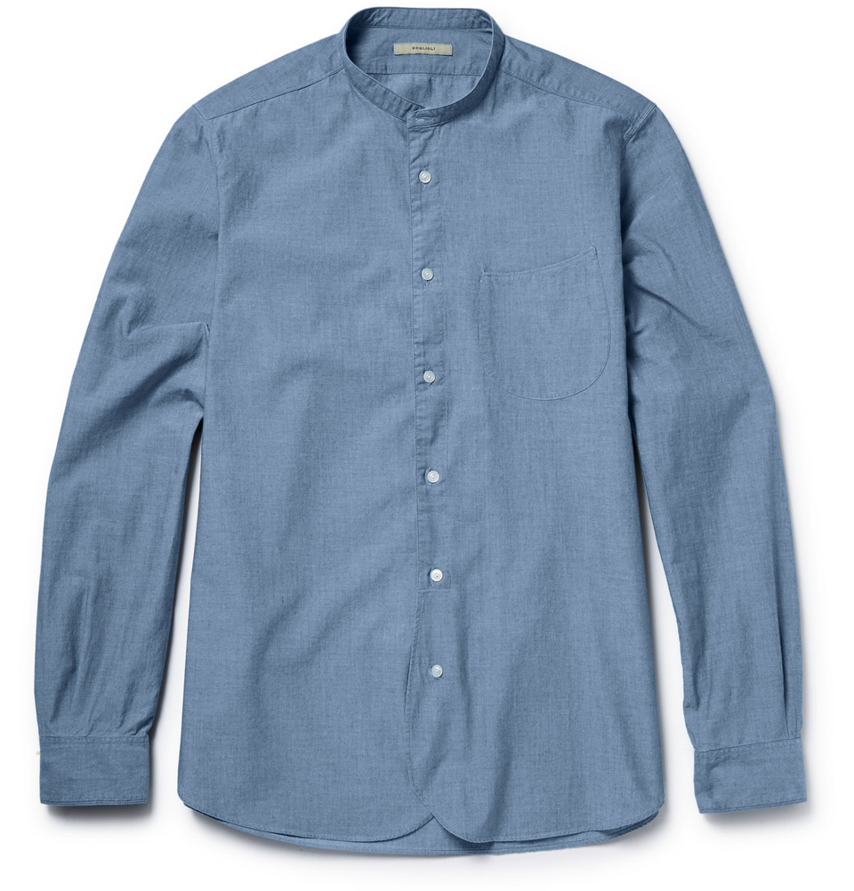 Sembra denim ma è più leggero. È la camicia azzurra dell’estate, da portare anche sotto la giacca del completo da ufficio.