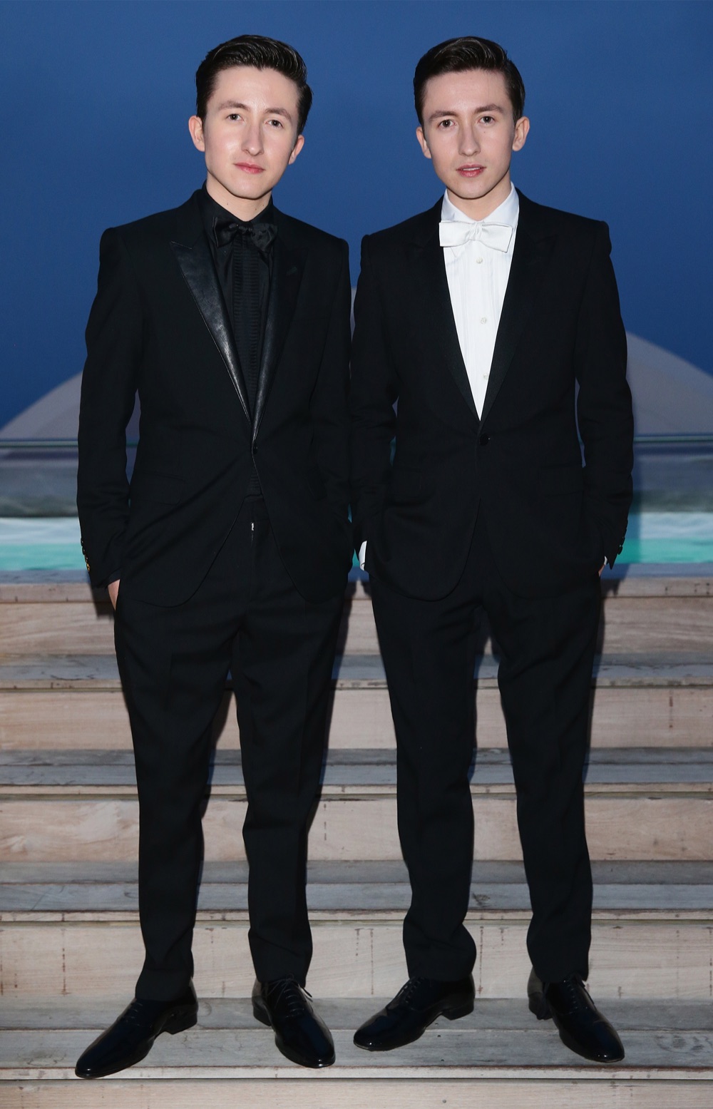 I fratelli attori Christian e Jonah Lees in smoking, Saint Laurent