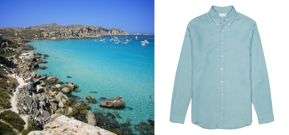 Altra isola, altro look. Il fascino delle Egadi lo si ritrova a Favignana. Acque cristalline e una cucina da far girare la testa. Di giorno si gironzola per calette con costumi ultralight, occhiali da sole dalle forme squadrate, come quelli di Salvatore Ferragamo, in acetato bicolor che sfuma in tocchi di colore bordeaux e lenti con protezione UV e antigraffio. In spalla lo zaino in lino intrecciato con dettagli in pelle di Dolce&Gabbana abbianato alle espadrillas dello stesso tessuto rifinito con bordi in pelle. Al tramonto, per un mojito al pomodoro favignanese al chiringuito la Costa tra gli scogli della strada costiera di mezzogiorno, si indossa una camicia di lino dalle nuance che risaltano l’abbronzatura come il verde salvia di Bluemint.