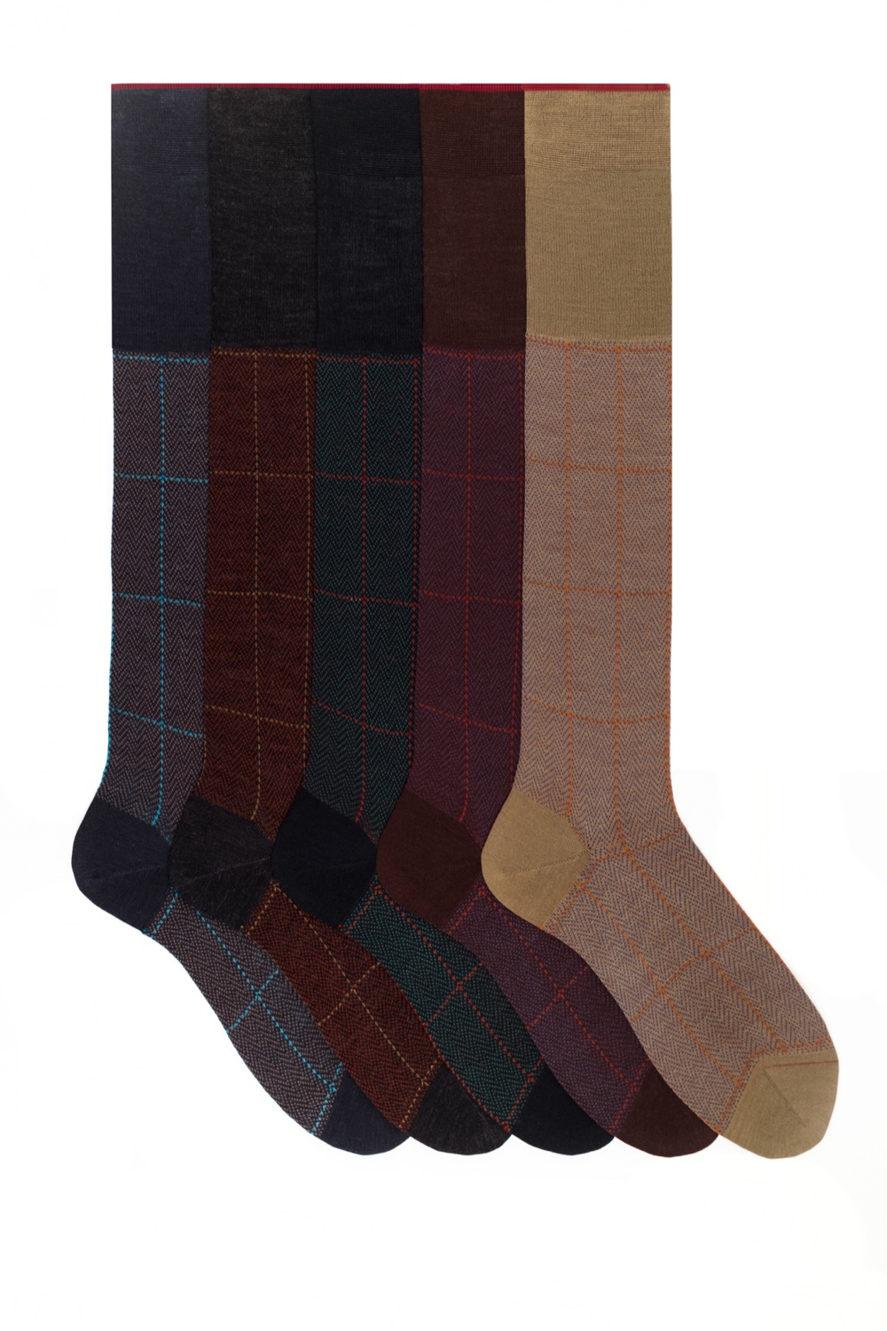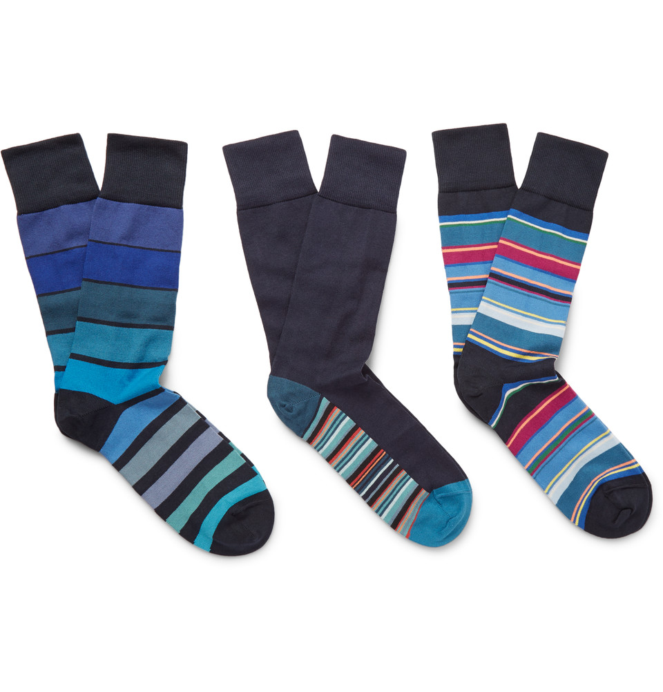 Infine le calze. Dal classico modello di Gallo con stampa macrochek a quelle a righe di Paul Smith fino alle nuove proposte di In The Box, da portare con denim vintage e sneaker consumate.