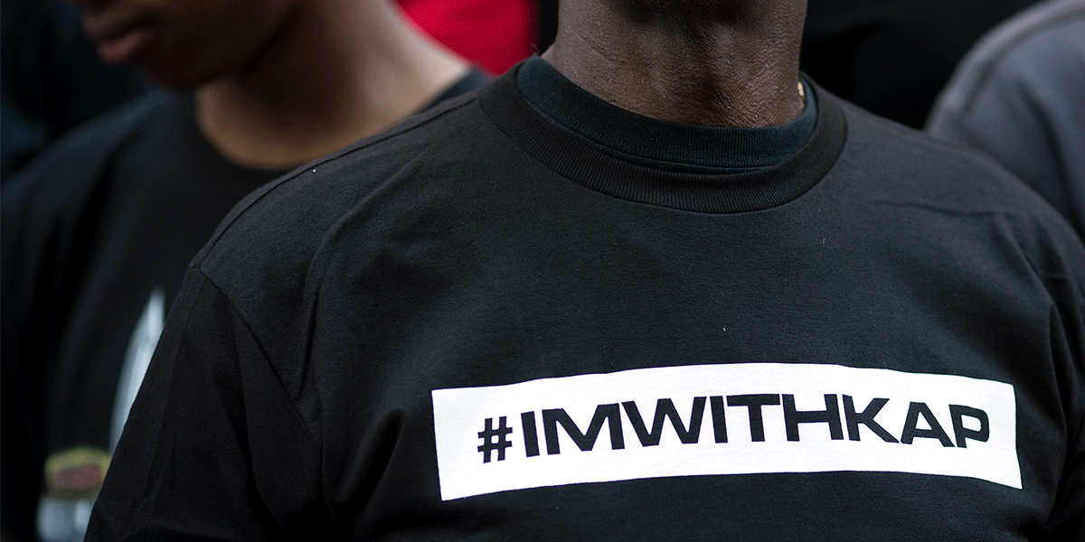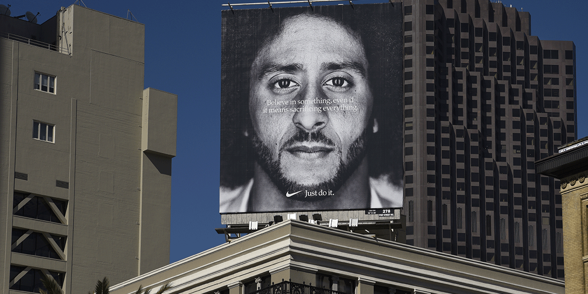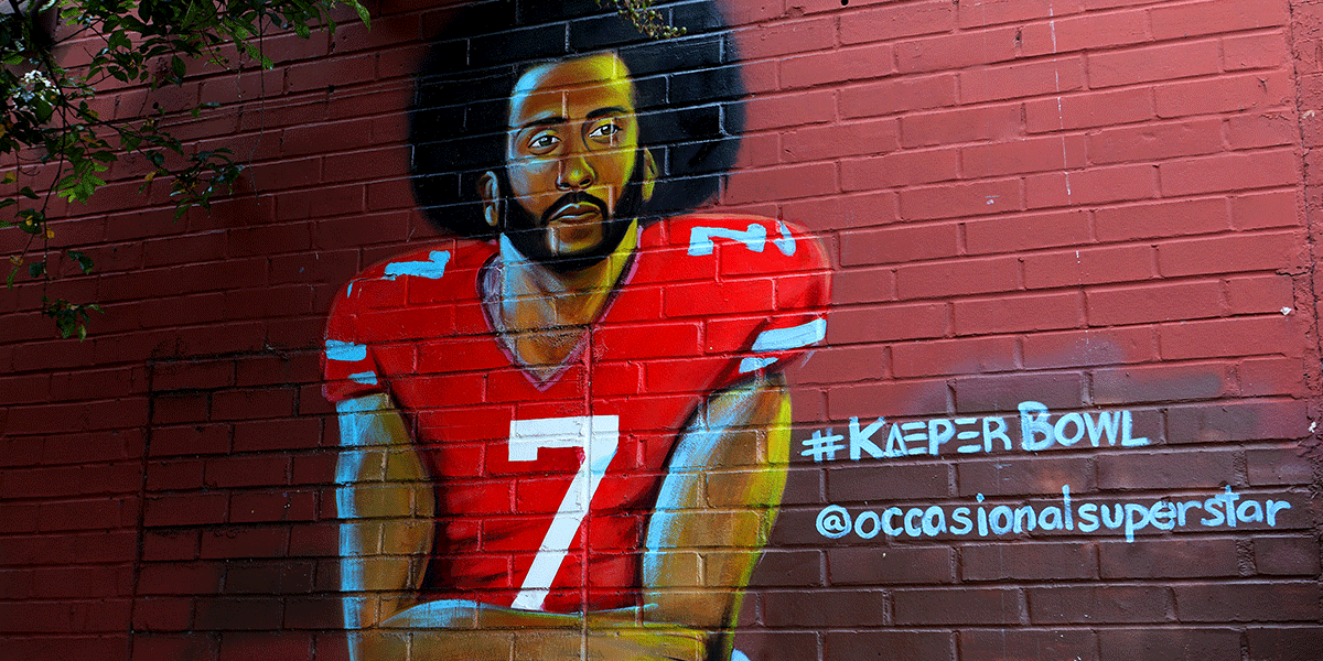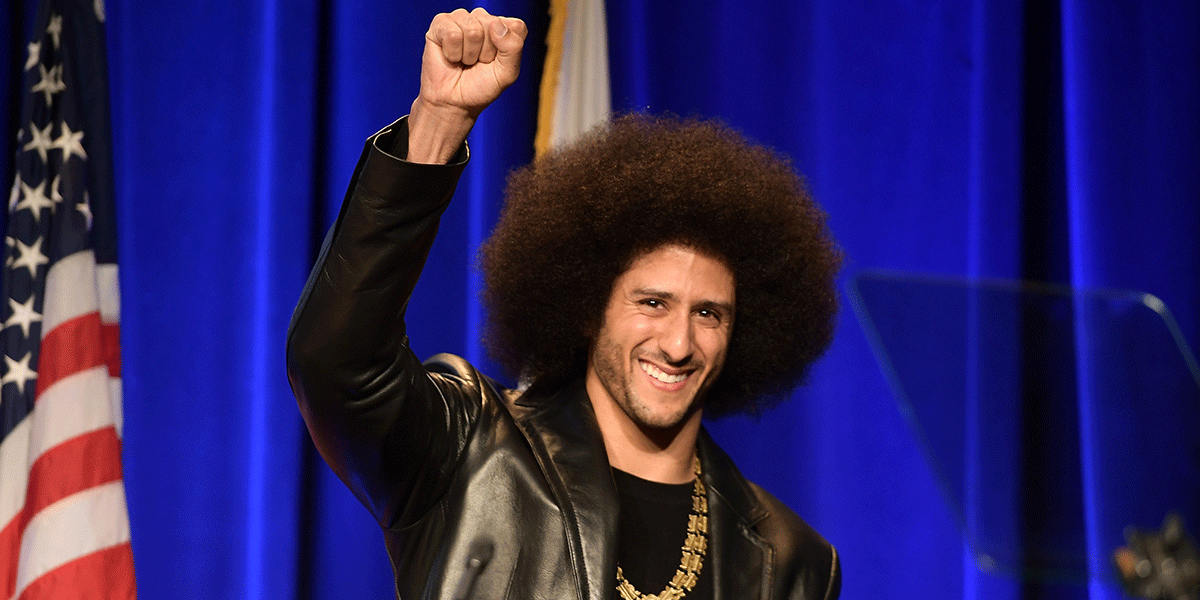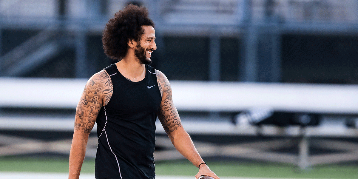 Classe 1987, nel 2011 inizia la sua carriera sportiva con la squadra San Francisco 49ers, della National Football League. A seguito di vari episodi di violenza razziale da parte della polizia, nel 2016 Colin Kaepernick, detto ‘Kap’, decide di non alzarsi durante l’inno nazionale suonato a inizio partita, ma bensì di inginocchiarsi. ‘Non starò in piedi a mostrare orgoglio a un Paese che opprime le persone di colore’, disse. Iniziava così la sua protesta contro le discriminazioni, imitata da vari sportivi tanto da provocare le ire di Trump. Un gesto che non verrà perdonato: nel 2016, la San Francisco 49ers decide di non rinnovargli l’incarico, rendendolo di fatto a partire dal 2017 un free agent, un giocatore senza contratto.