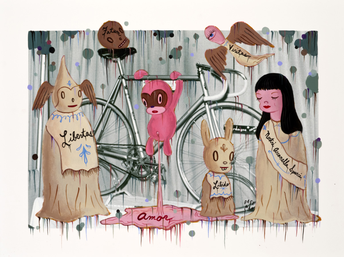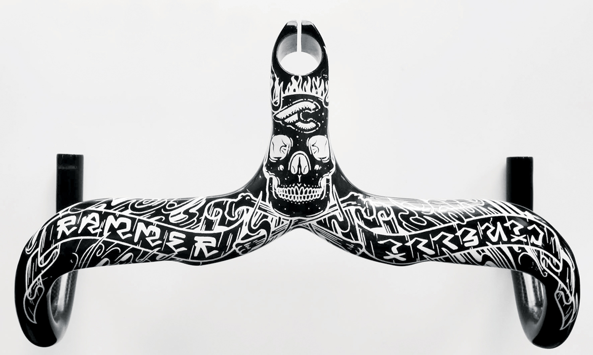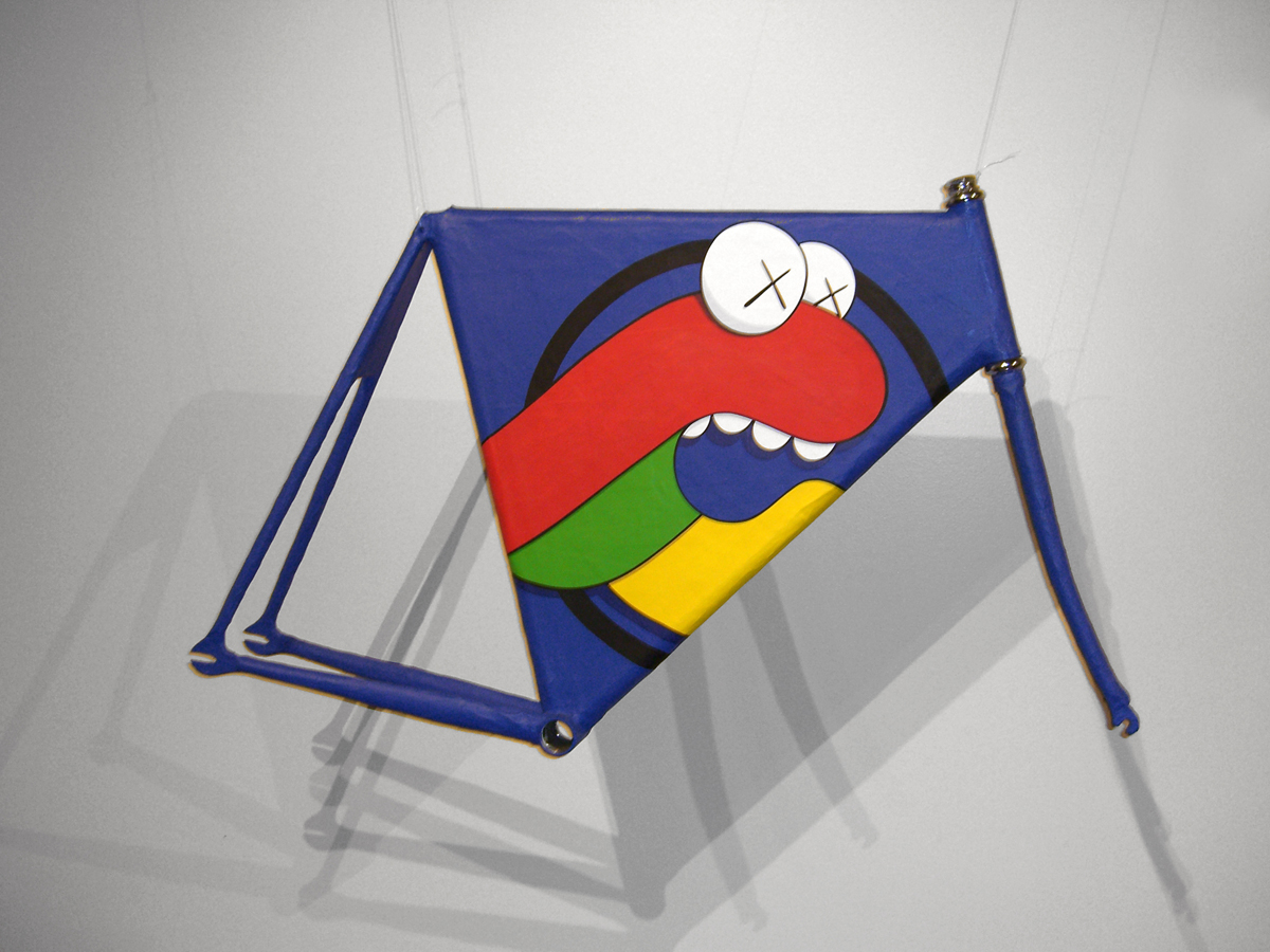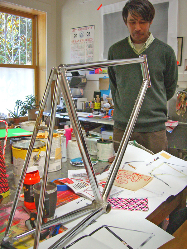 Barry McGee nel suo studio di San Francisco, con il telaio di una Supercorsa Pista