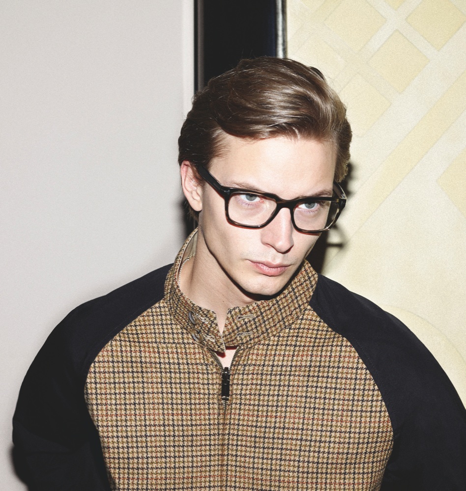 VISIONI FORMALI. Apologia del rigore. Il diktat del neo-formale vuole nuove regole in materia di occhiali. Lasciate nel cassetto le più scontate lenti tonde torna un design squadrato e assertivo. Le aste si fanno robuste, l’ampiezza del ponte si riduce. I profili? Sagomati, con venature a vista. Occhiali con montatura in acetato incisa a laser, Tom Ford Eyewear by Marcolin, euro 245; bomber reversibile in fraser tartan, Baracuta, euro 570.