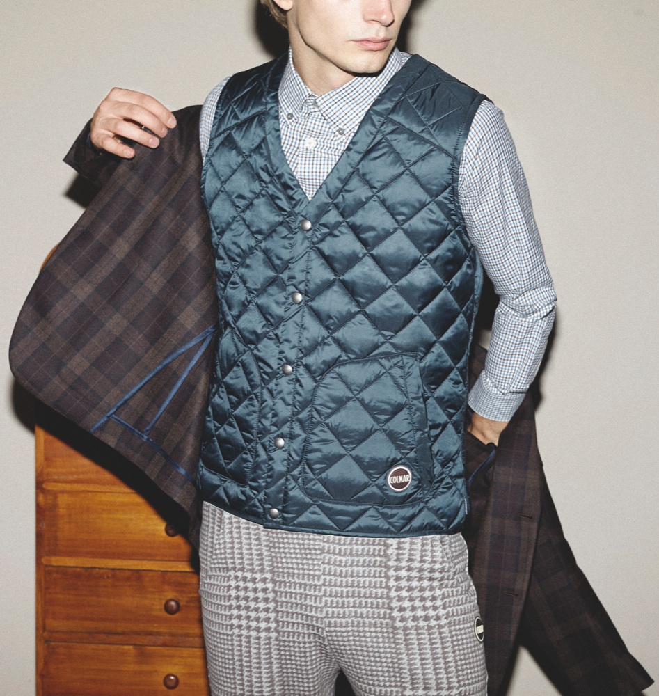 GILET NEO-URBAN. Sono lontani i tempi delle battute di caccia nello Yorkshire. Il gilet “hunter” dalla tipica lavorazione a losanghe matelassé si porta in città. Merito delle imbottiture ultralight e del nylon lucidato che assicura alti standard termo-protettivi. Punto di partenza per uno stile country riveduto e corretto è l’accostamento di consistenze e pattern che esaltano l’effetto check su check. Gilet trapuntato e imbottito in ovatta, Colmar Originals, euro 130; camicia in cotone regular fit, Pal Zileri, euro 165; giacca due bottoni in fresco di lana, Mauro Grifoni, euro 670; pantaloni in felpa garzata, Colmar Originals, euro 90.