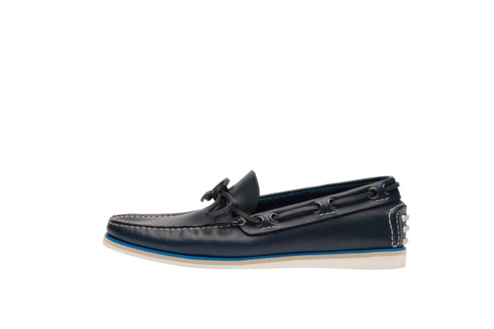Le scarpe da barca hanno suole in gomma e tomaie in canvas o in pelle, come quelle di Car Shoes, da indossare con bermuda o chinos colorati e maglione con scollo a scialle come quello di Tommy Hilfigher, da infilare appena si attracca al molo, per andare a bere un drink al tramonto.