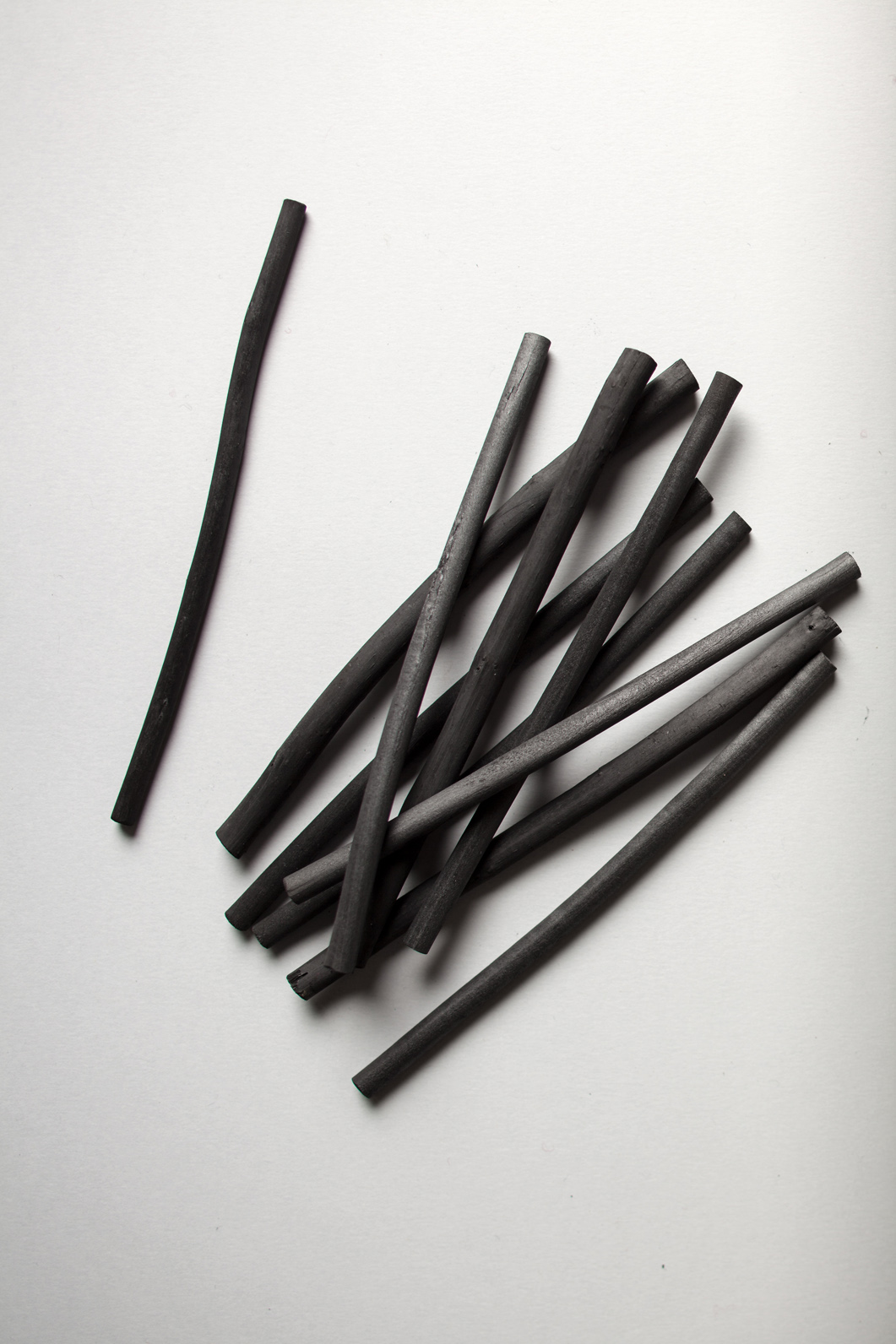 Alcuni dei carboncini usati da Ferretti per accentuare le parti più scure dei bozzetti.
