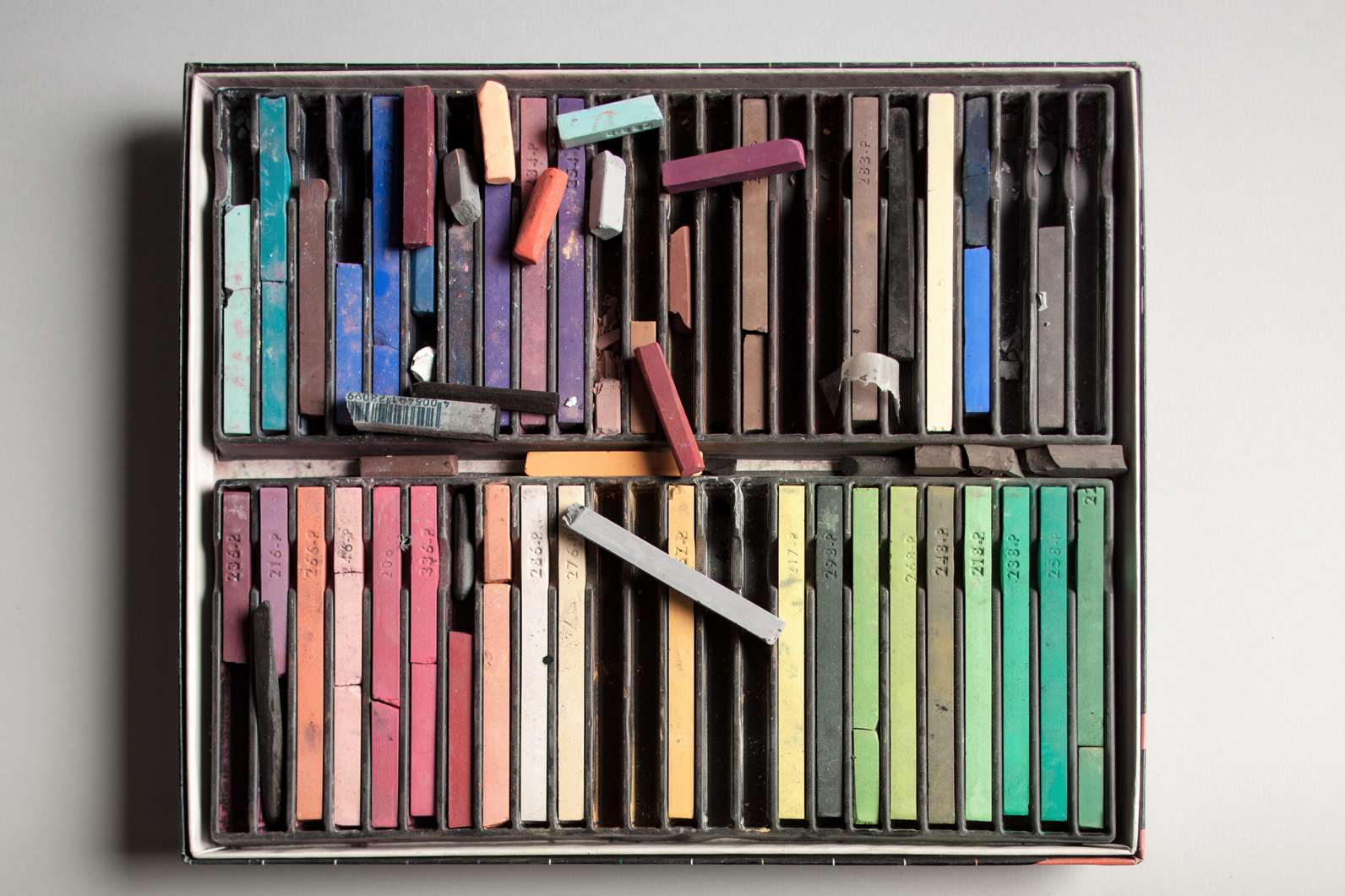 I gessetti di vari colori usati per realizzare i bozzetti a mano, dando vita a dettagli e sfumature che un rendering al computer non potrà mai eguagliare.