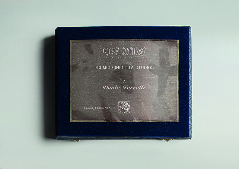 Uno dei tanti premi assegnati a Dante Ferretti nel corso della sua carriera. Nello specifico, un riconoscimento da parte di Cinecittà. «A un certo punto ci si abitua anche, me ne hanno dati molti forse perché non sanno a chi darli», scherza lo scenografo.