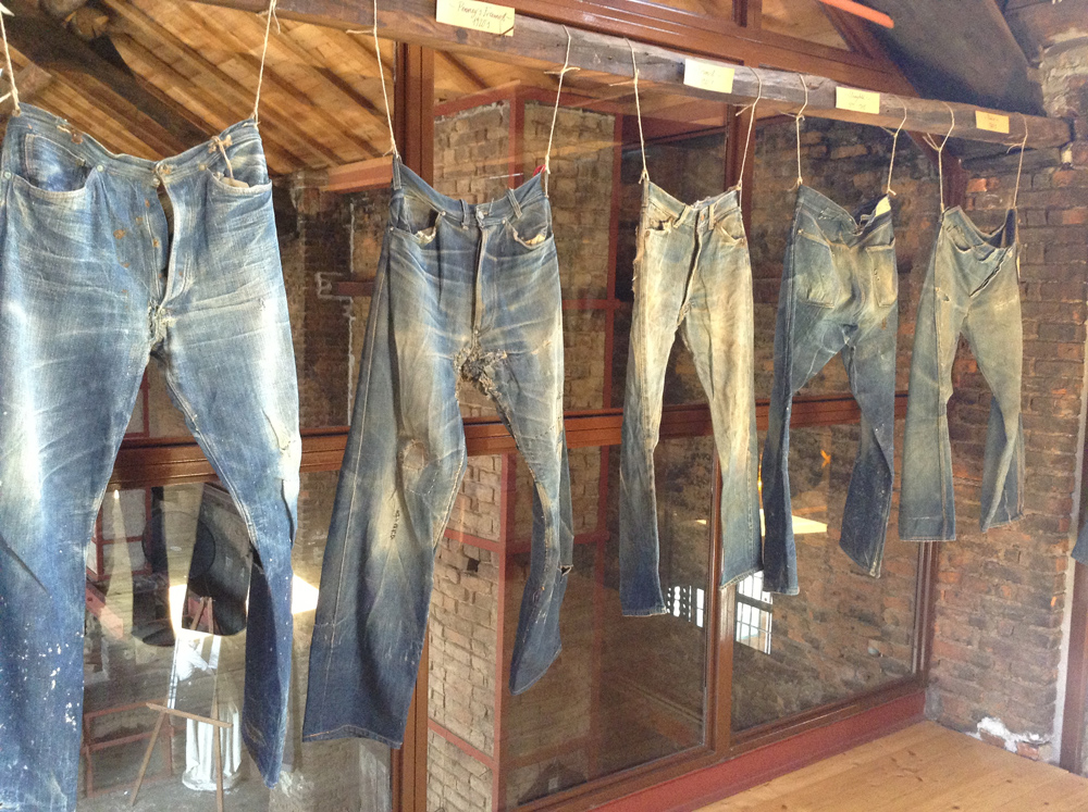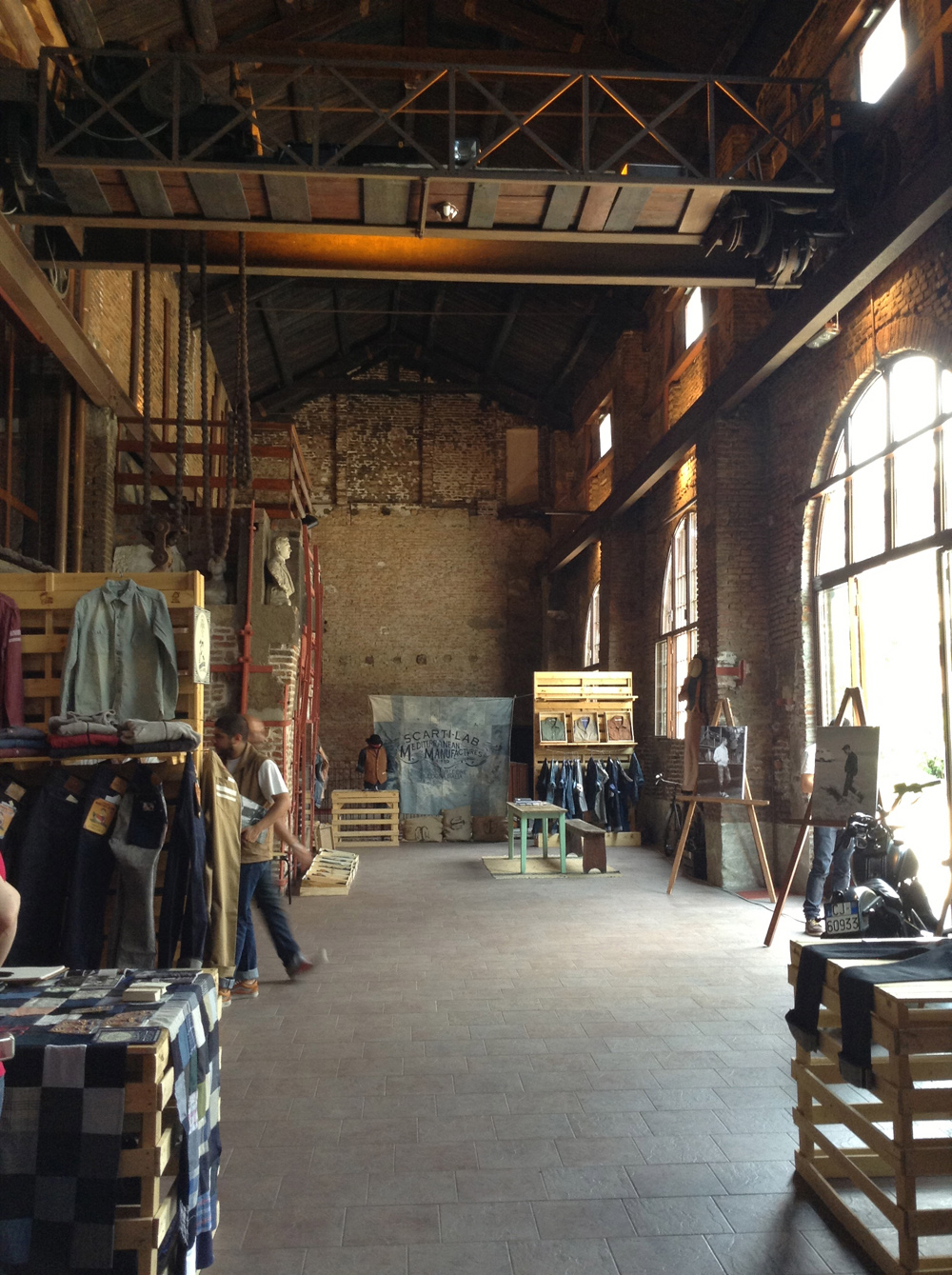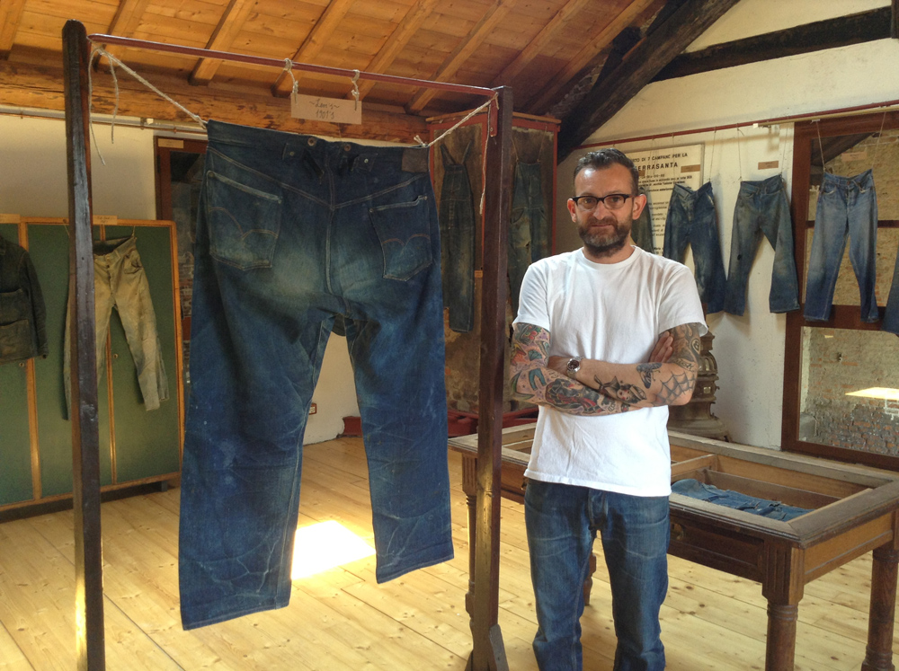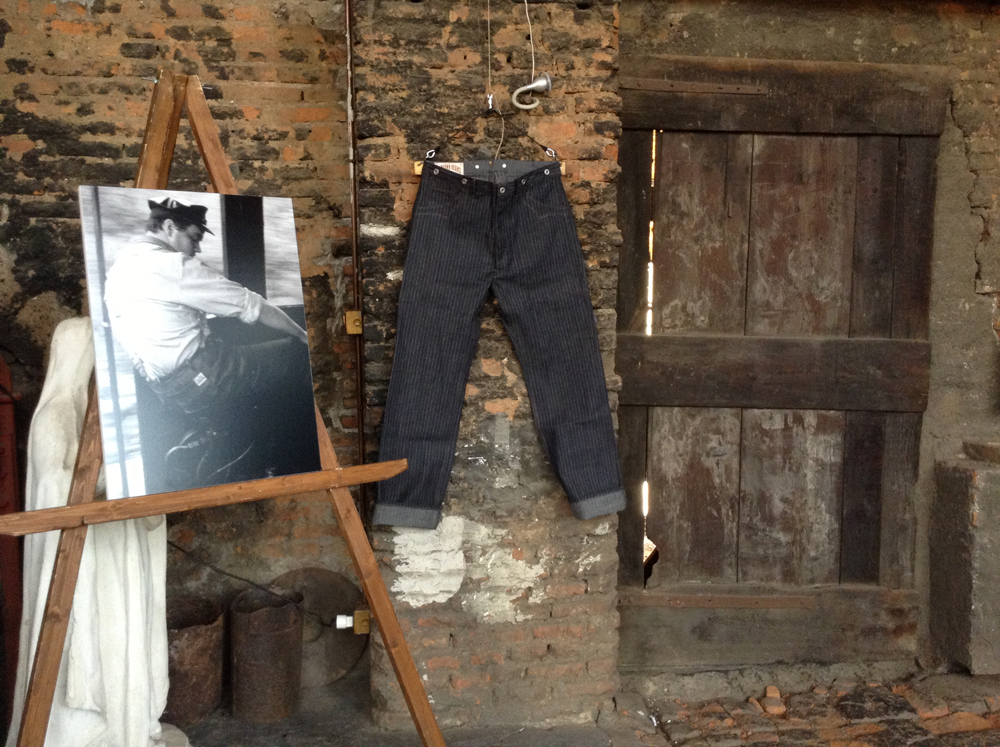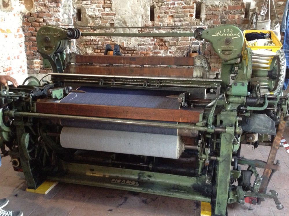 Incorniciato come un quadro al centro del piano superiore della Fonderia Napoleonica Eugenia di Milano, un paio di jeans taglia extra large che ha più di 110 anni: un Levi’s 501 datato 1901. Il proprietario è Antonio Di Battista, collezionista di jeans e fondatore del marchio Blue Blanket che possiede un archivio di circa tremila capi. La mostra, organizzata da Crackers Magazine, è la Denim Unwashed, un evento interamente dedicato al denim e alle due ruote che si sviluppa lungo la Denim Boulevard, la Via Genova Thaon Di Revel, ossia il Motoquartiere di Milano durante la Settimana della moda uomo. L’interno della Fonderia è un’oasi lontana dai rumori e dal caos del traffico cittadino, il fascino di un antico passato fa da sfondo alla storia del denim. Il silenzio è spezzato solo dal rumore di un originale telaio a navetta della Berto Industria Tessile degli anni Cinquanta restaurato da maestri artigiani che tessono ancora come una volta e che mostrano al pubblico come nasce un jeans cimosato, un percorso che va dalla filiera del cotone al tessuto. Ma non c’è solo il denim italiano. Tra gli espositori spicca il giapponese Japan Blue Group Denim, uno dei più antichi produttori del distretto di Okayama, l’americano Tellason che utilizza il pregiato filato proveniente dalle piante di White Oak in Nord Carolina e Good Genes, il vero denim del Bronx.
