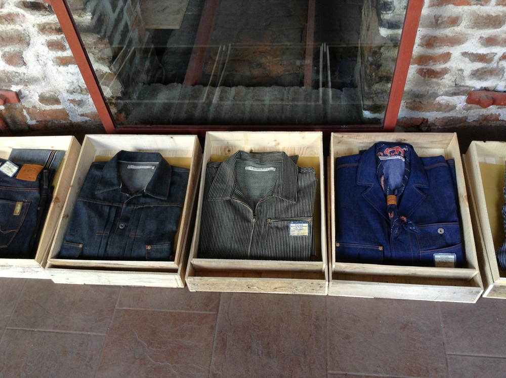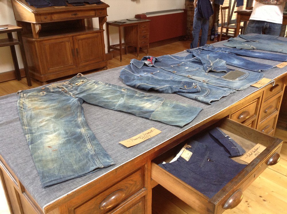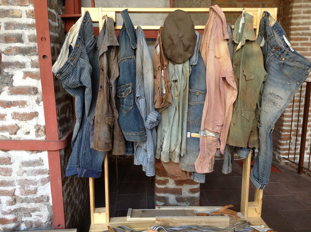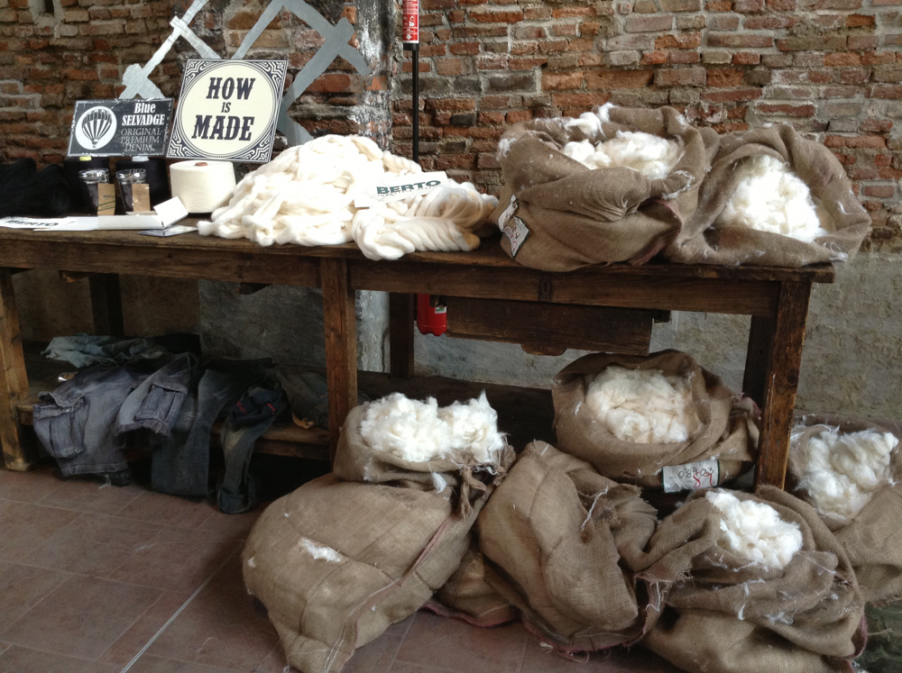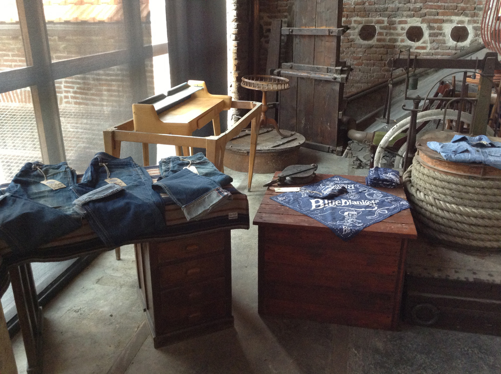 Incorniciato come un quadro al centro del piano superiore della Fonderia Napoleonica Eugenia di Milano, un paio di jeans taglia extra large che ha più di 110 anni: un Levi’s 501 datato 1901. Il proprietario è Antonio Di Battista, collezionista di jeans e fondatore del marchio Blue Blanket che possiede un archivio di circa tremila capi. La mostra, organizzata da Crackers Magazine, è la Denim Unwashed, un evento interamente dedicato al denim e alle due ruote che si sviluppa lungo la Denim Boulevard, la Via Genova Thaon Di Revel, ossia il Motoquartiere di Milano durante la Settimana della moda uomo. L’interno della Fonderia è un’oasi lontana dai rumori e dal caos del traffico cittadino, il fascino di un antico passato fa da sfondo alla storia del denim. Il silenzio è spezzato solo dal rumore di un originale telaio a navetta della Berto Industria Tessile degli anni Cinquanta restaurato da maestri artigiani che tessono ancora come una volta e che mostrano al pubblico come nasce un jeans cimosato, un percorso che va dalla filiera del cotone al tessuto. Ma non c’è solo il denim italiano. Tra gli espositori spicca il giapponese Japan Blue Group Denim, uno dei più antichi produttori del distretto di Okayama, l’americano Tellason che utilizza il pregiato filato proveniente dalle piante di White Oak in Nord Carolina e Good Genes, il vero denim del Bronx.