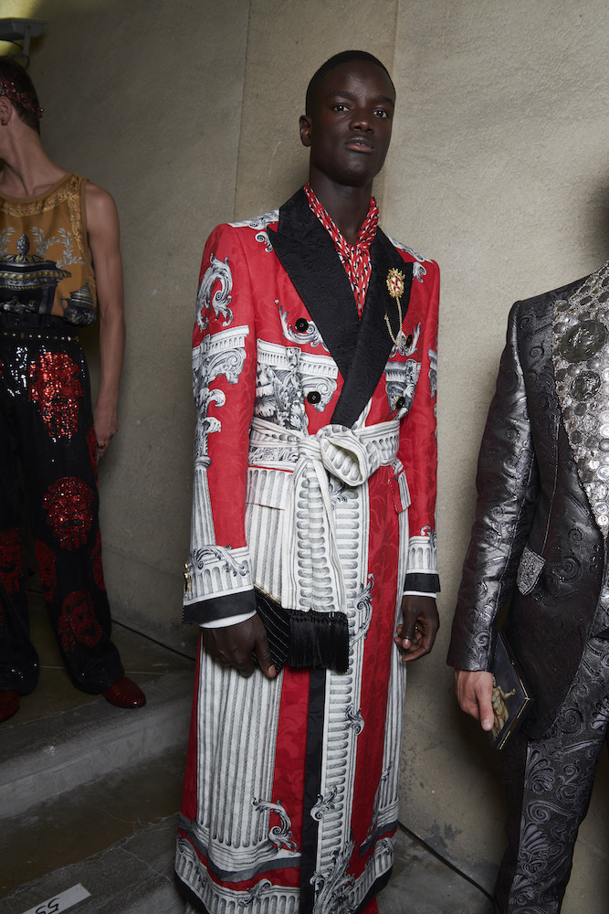 La Sciacca antica era arredata da enormi tappeti pensati per accogliere gli ospiti fino al Palazzo dei Gesuiti. Il parroco della prima piccola Chiesa, Don Enzo, mi conduce all’interno del piccolo sacro gioiello. Oltre ai dipinti recuperati raffiguranti il Vecchio Testamento, anche una statua lignea di un Cristo mezzo bruciato, recuperato e incorniciato. Un’atmosfera magica, come i 135 look di Dolce&Gabbana