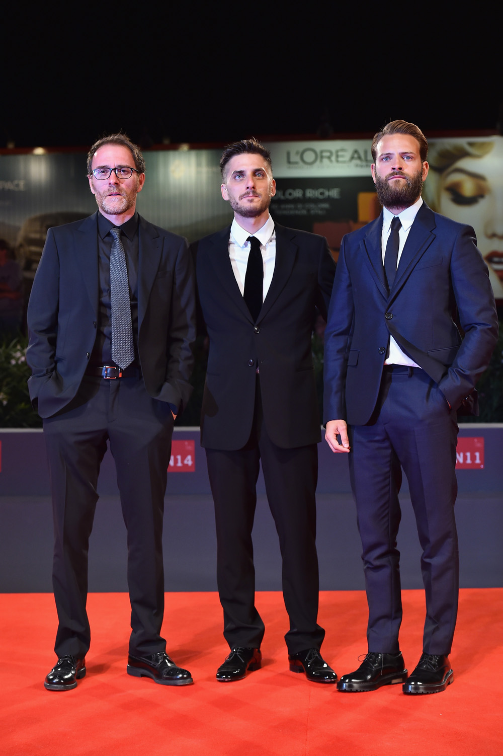E finalmente, arrivano gli italiani, che in quanto a stile, non hanno niente da invidiare ai colleghi d’oltreoceano: alla prima di Don’t be bad, il terzetto d’assi è formato da Valerio Mastrandrea e dai giovani Luca Marinelli e Alessandro Borghi. Se lo smoking è d’ordinanza, sul colore si lascia libertà: Borghi infatti lo sceglie in un intenso blu notte, nuance eclettica ma adatta ai red carpet serali.