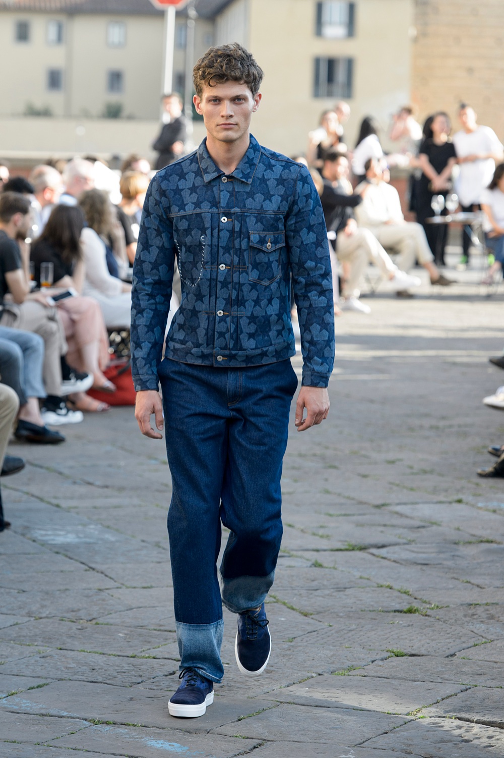 È il nuovo passepartout. D’inverno lo si infila sotto al cappotto, rigorosamente a vista. In primavera è perfetto sotto al raincoat nelle giornate di pioggia, in estate lo si indossa slacciato, con chinos e t-shirt bianca. Il giubbino di jeans è un evergreen, insomma. Le forme over anni Ottanta si ripescano dal guardaroba dei tempi del liceo. Quelli skinny, che vestono come fossero camicie, si customizzano: dalle cuciture alle abrasioni fino alla scelta dei bottoni. Sfilano in passerella con stampe tono su tono che rievocano cieli stellati delle notti d’estate. Come quello di Ports 1961, blu notte, abbottonato fino al colletto e abbinato a pantaloni ampi e sneaker da barca.