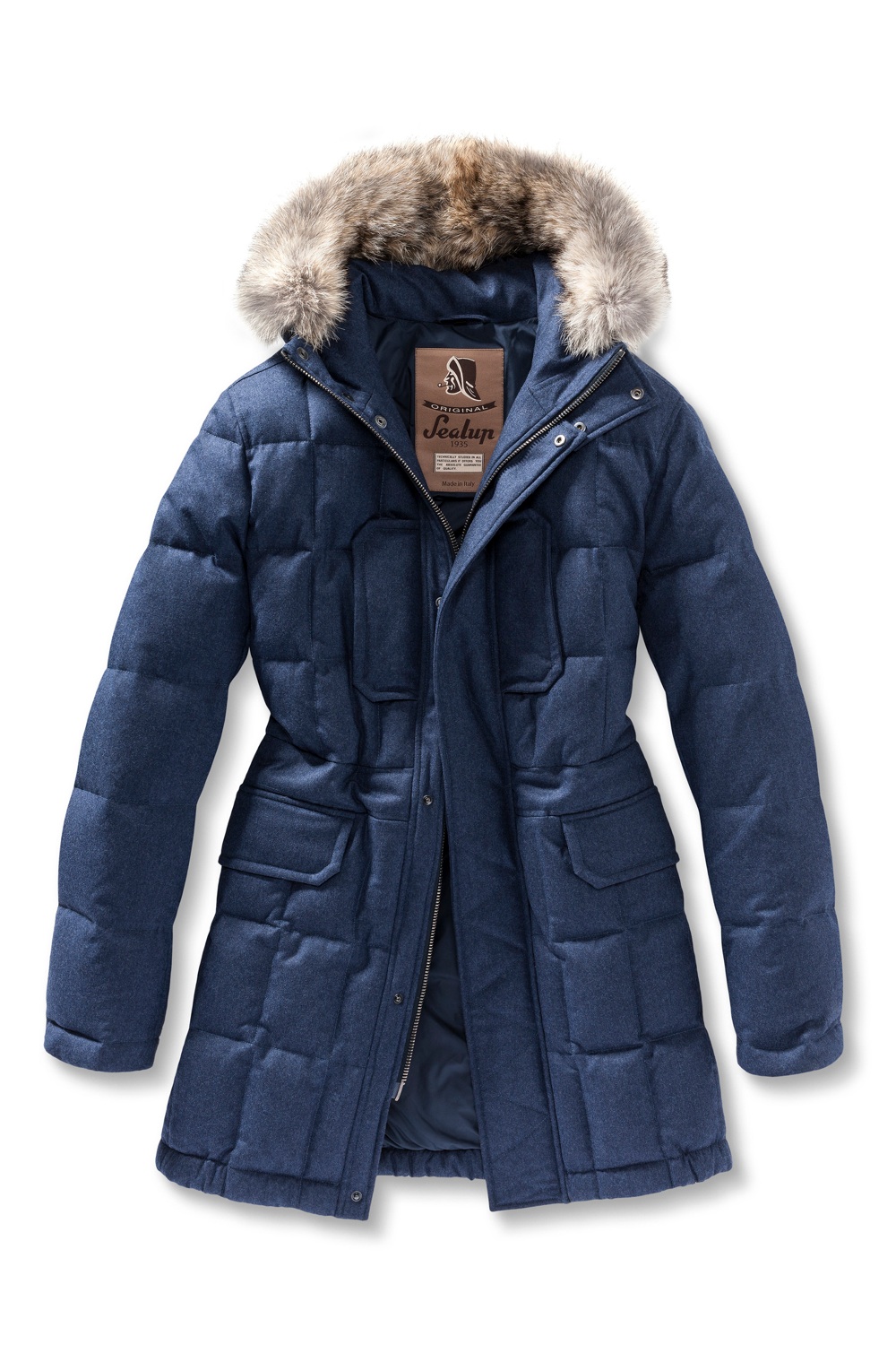 I tessuti vanno dalla lana tecnica trattata con tecniche idrorepellenti, al montone, fino al nylon imbottito con piuma d’oca. I cappucci sono bordati in pelliccia, come da tradizione, mentre la palette di colori varia dal più formale blu navy al verde brillante.