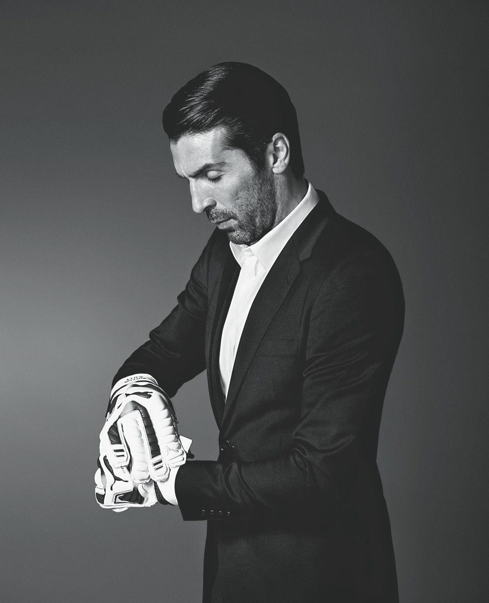 Si presenta con sorrisi e battute, ma quando ci sediamo e toglie gli occhiali scuri, l’espressione diventa seria. Sul volto compare la stanchezza per lo sfortunato posticipo con il Napoli della sera precedente, ma è solo un attimo. Mi guarda negli occhi, con lo stesso sguardo concentrato con cui si è abituati a vederlo in tv, mentre dispone la barriera o guida i compagni. Colpisce la capacità di passare da un registro all’altro. In fondo è così anche la sua carriera, da enfant prodige guascone e irriverente con la maglia del Parma a capitano e uomo simbolo di Juventus e Nazionale. La Fifa lo ha eletto miglior portiere degli ultimi venticinque anni, il più forte del XXI secolo. A lui importa solo essere Gianluigi Buffon, il portiere. «Di cosa parliamo?»: la prima domanda la fa lui. Parliamo di portieri: icone, miti e fascino dei numeri uno. Annuisce, il tema gli piace, così inizia a soppesare le parole, lentamente. «Il ruolo del portiere mi ha sempre affascinato ancor prima di praticarlo. Mi colpiva la diversità dagli altri calciatori già dal suo abbigliamento. Potersi vestire come vuole, indossando guanti e cappellino, lo rendevano ai miei occhi già di per sé un personaggio». Personaggio gli piace, più della parola “mito” di cui abuso nelle mie domande. Per essere un personaggio occorre un’identità forte e una personalità in grado di imporsi nella propria epoca: in un calcio in continua evoluzione nessuno infatti è eterno. «Creare dei miti può esser bello per avere punti di riferimento, ma occorre anche “smitizzare”. Tra cinquant’anni il calcio sarà diverso, più difficile. E anche avere come riferimento Buffon avrà poco senso, così come oggi ha poco senso richiamarsi a Ricardo Zamora o a Lev Jašin: il calcio di allora e quello di oggi, sono ormai sport diversi».