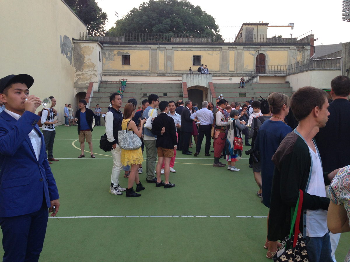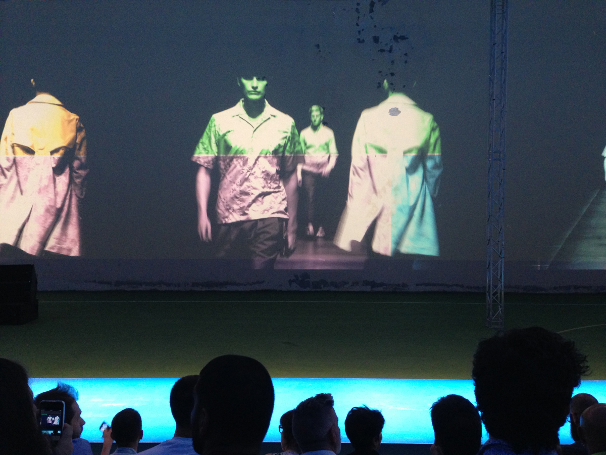 Nove anni di successo sono valsi a Junichi Abe l’elezione a guest designer di Pitti Immagine Uomo. Nome di punta delle passerelle parigine, nel suo marchio Kolor l’antico braccio destro di Junya Watanabe sa comporre l’armonia tra la tradizione nipponica e lo spirito del momento. In un luogo intriso di eco sportiva (lo Sferisterio fiorentino nacque nel 1895 come spazio dedicato alle gare di pallone), la sfilata reale si proietta in contemporanea anche su maxi-schermo. Come in una kermesse agonistica da seguirsi sugli spalti. L’approccio minimale, che fa parlare l’anima dei tessuti prima ancora del disegno puro, scopre per la primavera-estate 2014 l’ebrezza delle stampe. Secondo la personale ammissione di Abe è una presenza del tutto nuova e imprevista, dettata da un modo di procedere che rifugge dalla ricerca forzosa di un tema unico. Sono piuttosto le folgorazioni dell’istante a dettare il taglio del suo sartoriale d’avanguardia, lirico e intimista. Pantaloni con riga al mezzo e bomber in nylon-seta, giacche stropicciate ad arte e ciabattine dalla tomaia preziosa, superati in raffinatezza solo dal cardigan che si allaccia a kimono. Più, ovviamente, alcune fioriture hawaiane; fanno capolino sulla camicia e come lembo che sfugge dal bermuda di volume accresciuto.