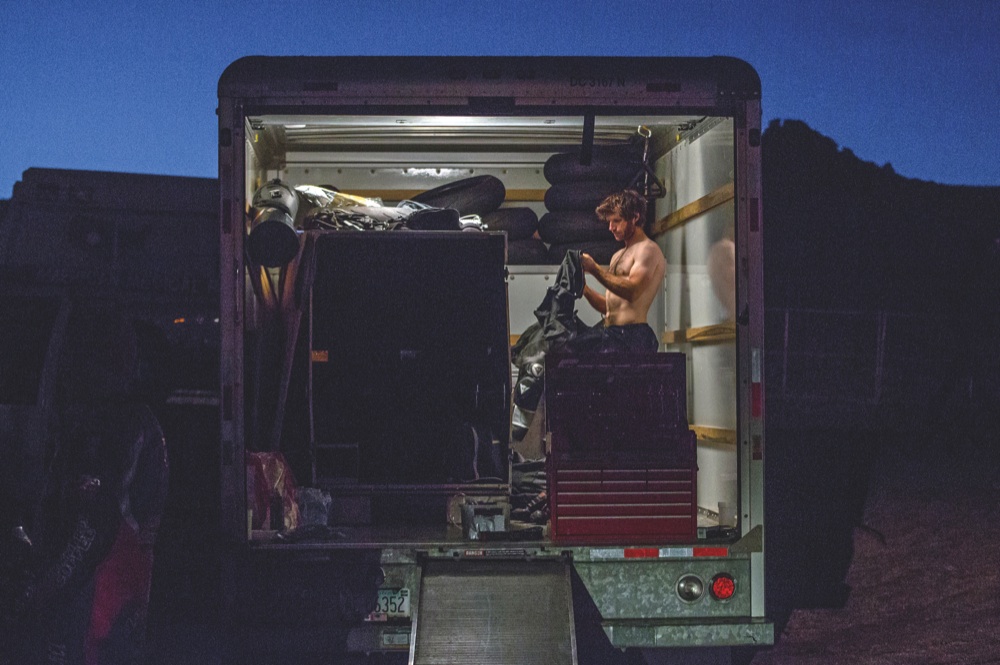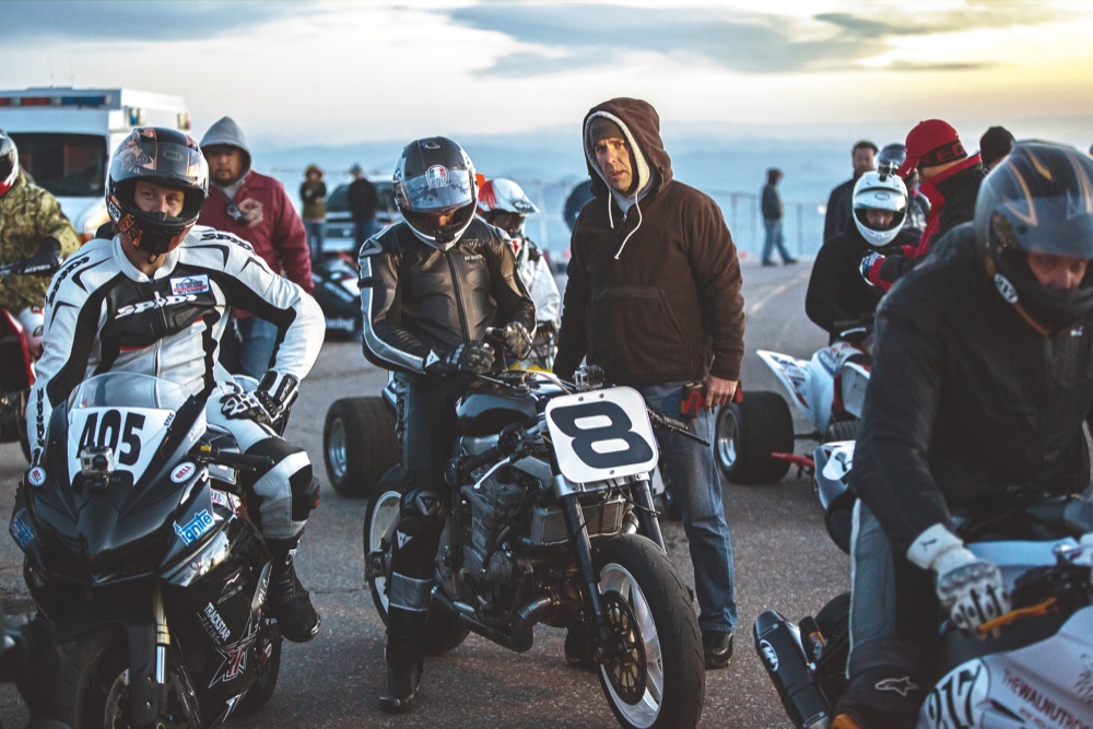 Lontano dai riflettori e dalle gare c’è la sua vera professione, quella che, dice, non abbandonerà mai: la manutenzione di autoarticolati. Esce di casa alle 6 del mattino, percorre in bici i 30 km che lo separano dall’officina, prepara i camion per la revisione annuale, poi pedala di nuovo fino a casa, a volte dopo più di 12 ore di lavoro. Se si sta preparando per una competizione ciclistica – gare endurance di 24 ore – spesso non torna a casa prima delle 23. Il lavoro in officina non è qualcosa cui si dedica una o due volte l’anno, ma un’attività che svolge settimana dopo settimana, se non è impegnato con le riprese o in gara. In due giorni di riprese può guadagnare l’equivalente di un anno di lavoro sui camion. E tra sponsor e bonus, figura già nella lista dei motociclisti inglesi più ricchi – tra le star del World Superbike e della MotoGP. Corre per la Suzuki, con sede nell’Irlanda del Nord, ma prende pochissimi soldi dal team. In cambio, non si presta alle pubbliche relazioni, che detesta. Se aggiungiamo i lucrosi contratti con la Tv e il successo dell’autobiografia – per due mesi in testa alla classifica dei best seller del Times, dopo aver scalzato Hillary Clinton – è evidente che l’ultima cosa di cui ha bisogno è lavorare, men che meno in un’officina su camion sporchi di grasso. Ma è il lavoro che ama. È nato, come dice lui, in un “posto di merda”, Grimsby, una cittadina portuale sulla costa nordorientale dell’Inghilterra. Una zona culturalmente stimolante tanto quanto può esserlo ficcare la testa nel water, ma Guy assorbe e raccoglie tutto ciò che può. Dopo aver completato la Pikes Peak International Hill Climb in Colorado, una cronoscalata motociclistica su asfalto di ben 14 miglia, nella quale i partecipanti affrontano 156 tornanti per raggiungere un’altitudine di 4.302 metri (la gara da cui sono tratte queste foto, ndr), Guy si è seduto da una parte e ha tirato fuori dalla tuta di pelle nera una copia di 1984 di George Orwell, accingendosi a continuare la lettura. Gli piace il rock alternativo e uno dei suoi cantanti preferiti è Ian Brown, ex Stone Roses. Non ha un televisore, non guarda le proprie serie, ma ama i film di Quentin Tarantino e di Shane Meadows. In un’intervista del 2013, quando venne chiesto a Tarantino come gli sarebbe piaciuto essere ricordato, il regista disse: «Come uno dei più grandi scrittori del secolo». Ho fatto la stessa domanda a Guy Martin e la risposta è stata: «Un bravo meccanico di camion e un tipo in gamba».