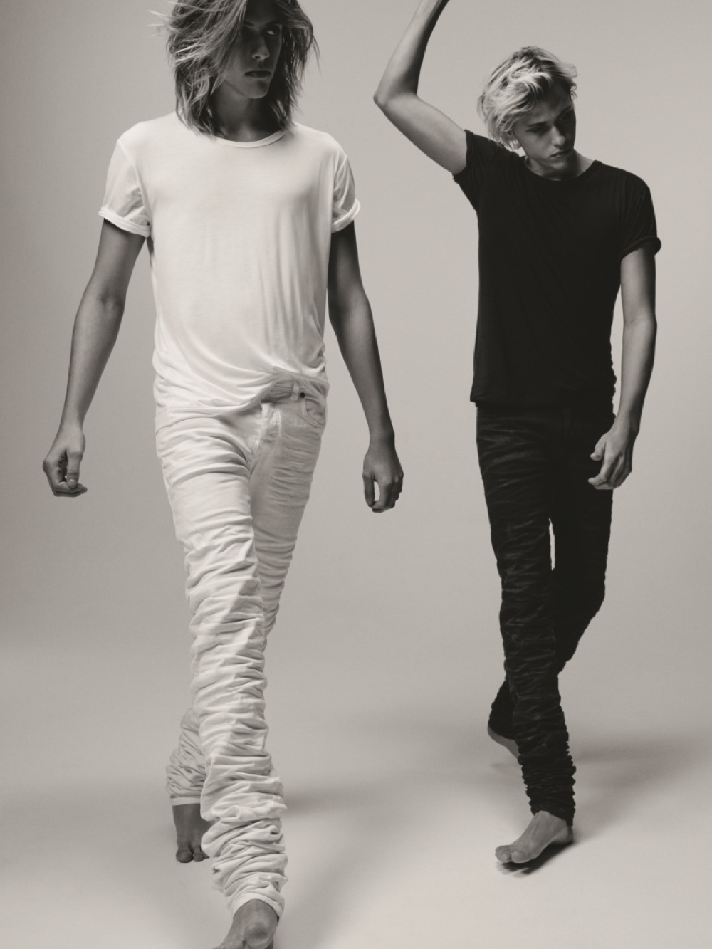 Nuove forme, invece per Diesel Black Gold disegnato da Andreas Melbostad. Il nuovo modello si chiama Type 2614, è il 50 per cento più lungo di un paio di jeans standard e combina uno slim fit ad un effetto 3-D ottenuto attraverso l’utilizzo per ogni gamba di specifiche apparecchiature tubolari. “Ho creato il Type-2614 con l’idea di aggiungere texture ad una silhouette slanciata ed allungata”, racconta Melbostad. “Tagliando il denim in una lunghezza maggiore e poi arricciandolo, abbiamo dato movimento ed una dimensione nuova alla gamba”.