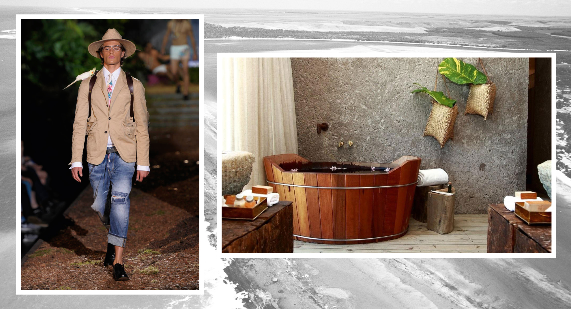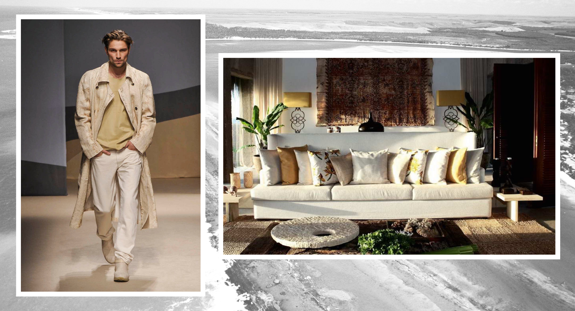 Kenoa Resort, un vero paradiso nello Stato dell’Alagoas, Brasile, piu presecismanete a Barra de Sao Miguel. In una posizione molto isolata, con vista mozzafiato sul parco naturale e Oceano. L’idea è quella di avere un luogo dove le persone possono godere di tranquillità e dimenticare la routine della vita cittadina. Un piccolo gioiello di serenità, in stile asiatico ma con sorriso brasiliano, con un una forte idea di eco sostenibilità grazie ai materiali utilizzati e l’utilizzo di luci LED a basso consumo. Un concetto di lusso formale, dove il naturale è protagonista, come lo sono i toni naturali della collezione estiva di Trussardi dal beige chiaro al color terriccio con silouette formale e comoda. Così Dsqured2, che unisce comfort e praticità. Minimalista e contemporaneo Corneliani, con abito sartoriale essenziale dal colore brown che riprende le sfumature della corteccia e del bosco. Per affrontare la giungla urbana con un po’ di gioia brasiliana.