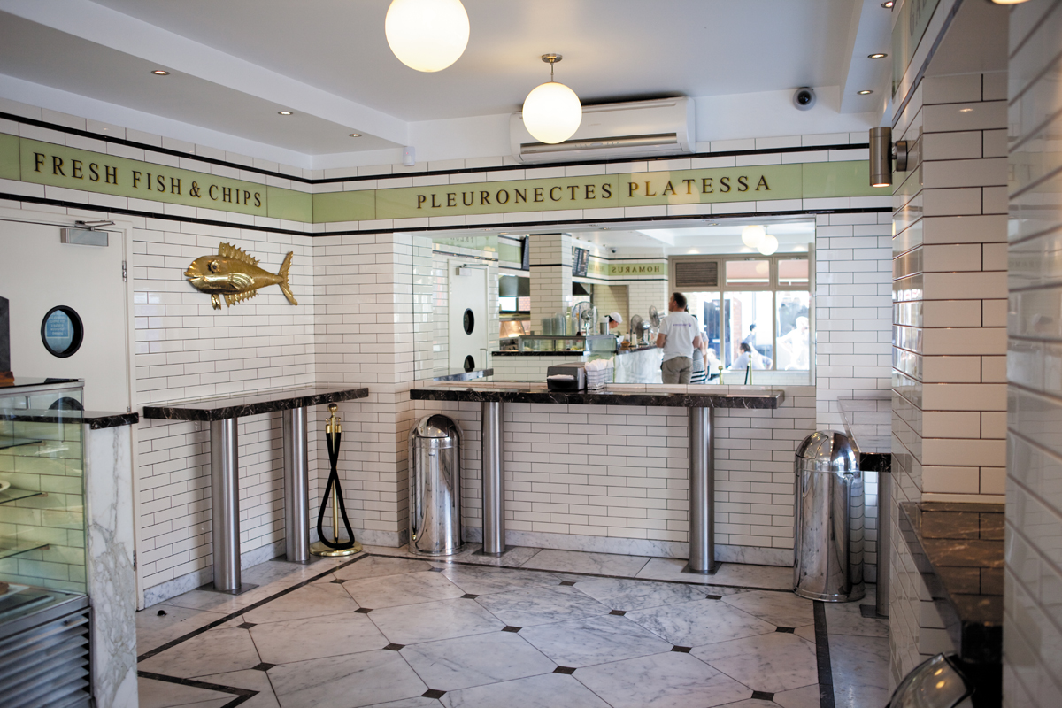 Il Sea Shell of Lisson Grove (49-51 Lisson Grove, Marylebone) è l'indirizzo per mangiare sogliole di Dover, salmone e scampi scozzesi. Pescati in modo sostenibile dalla comunità britannica di pescatori, come garantiscono i gestori. Foto Leonardo Collina