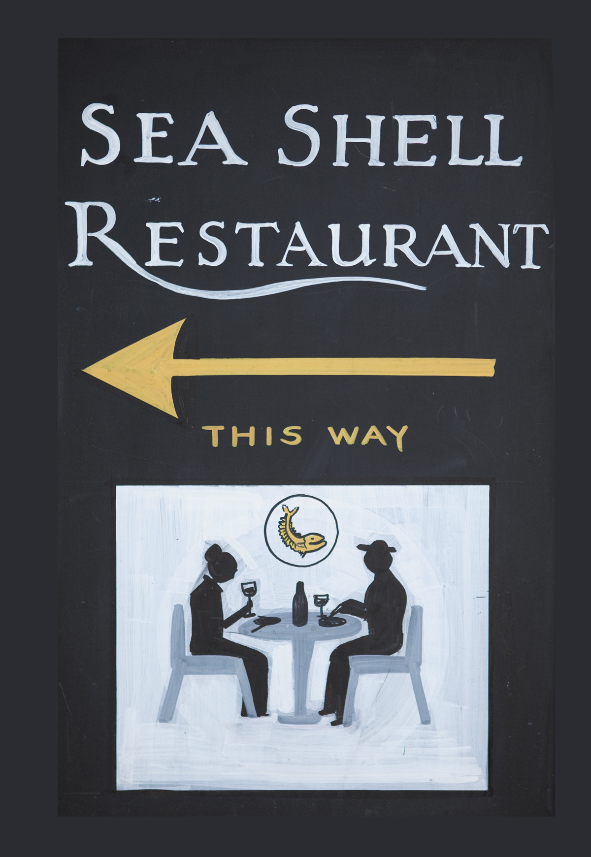 L’insegna per raggiungere la sala interna del Sea Shell. Foto Leonardo Collina