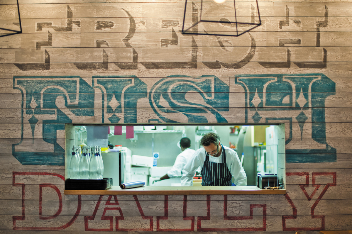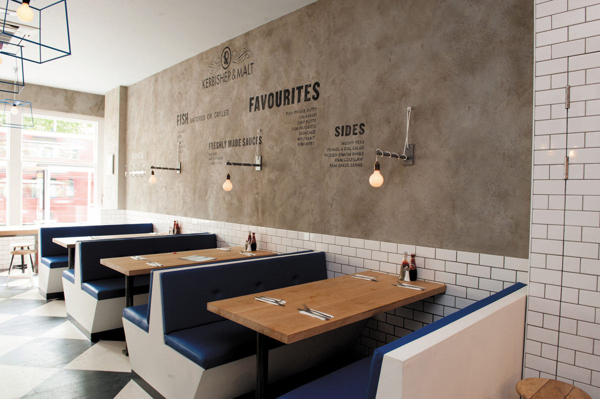 «No ai conservanti, al cibo in scatola, agli oli usati, alle luci al neon e alle patatine zuppe d’olio». Si presentano così lo chef Saul Reuben e cognagto, ideatori del Kerbisher&Malt (53 New Broadway, Ealing), oasi del fatto in casa a misura di pesce. Photo courtesy Kerbisher&Malt – Tom Bowles
