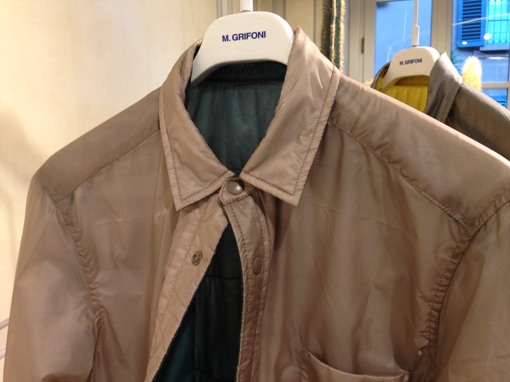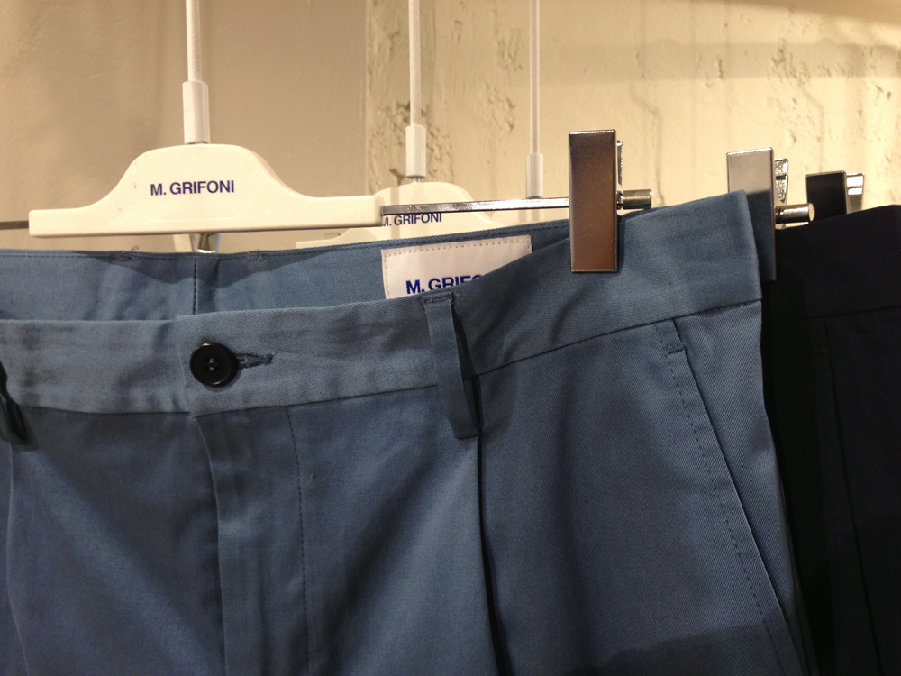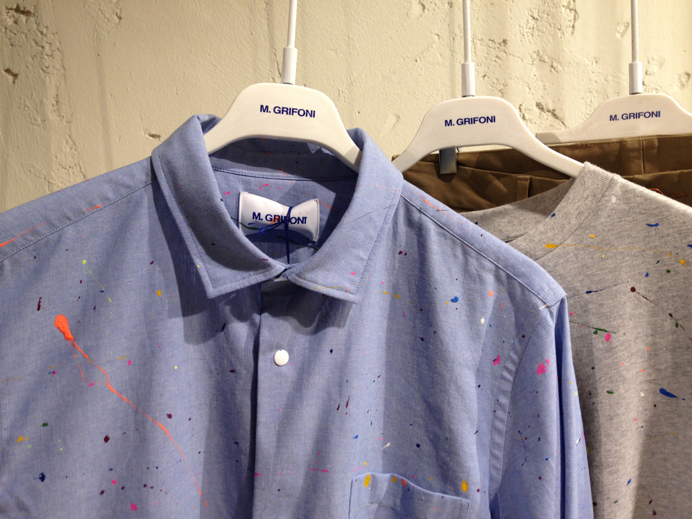 Nello showroom di via Santo Spirito niente è lasciato al caso per la presentazione della nuova collezione M.Grifoni, nuova avventura creativa di Mauro Grifoni. Uno spazio che è anche galleria d’arte, come ci ricordano gli scatti esposti alle pareti- una prova d’autore che raduna i nomi più stimolanti della fotografia artistica recente. Si sale, e al secondo piano c’è la festa vera. Calici di bollicine e musica dal vivo nella sala che Matteo Ghidoni ha allestito con pezzi scelti dal suo collettivo Salottobuono, punta di diamante nella ricerca del design d’avanguardia. Prima che la serata ci delizi il palato con le acrobazie culinarie del giovane chef Lorenzo Cogo, scopriamo le principali novità che M.Grifoni ha in serbo per la bella stagione. Camicie di grande pulizia, col dettaglio in più dei bottoni a clip e delle finiture a goccia di vernice, su pantaloni chino in puro cotone che virano dai blu alle gradazioni del silvestre e dello smeraldo. Stuzzicante la field jacket con inserti in canvas stampato e la giubba in denim che sul retro si permette un vezzoso zig-zag di chevron. Il pezzo irrinunciabile? Un camiciotto in nylon double, con l’interno foderato a contrasto.