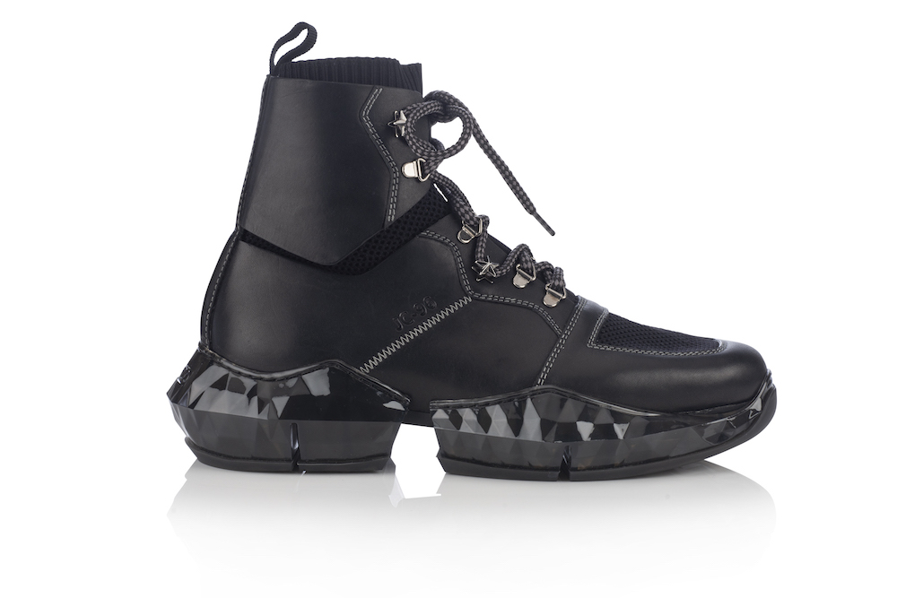 Diamond Spaceboot di Jimmy Choo si ispira all’attrezzatura da astronauta degli anni 60 e allo stesso tempo garantisce le prestazioni delle calzature sportive contemporanee. Tomaia in pelle vacchetta con cuciture a contrasto e suola in gomma ‘diamante’ multiforme che segue ogni movimento del piede