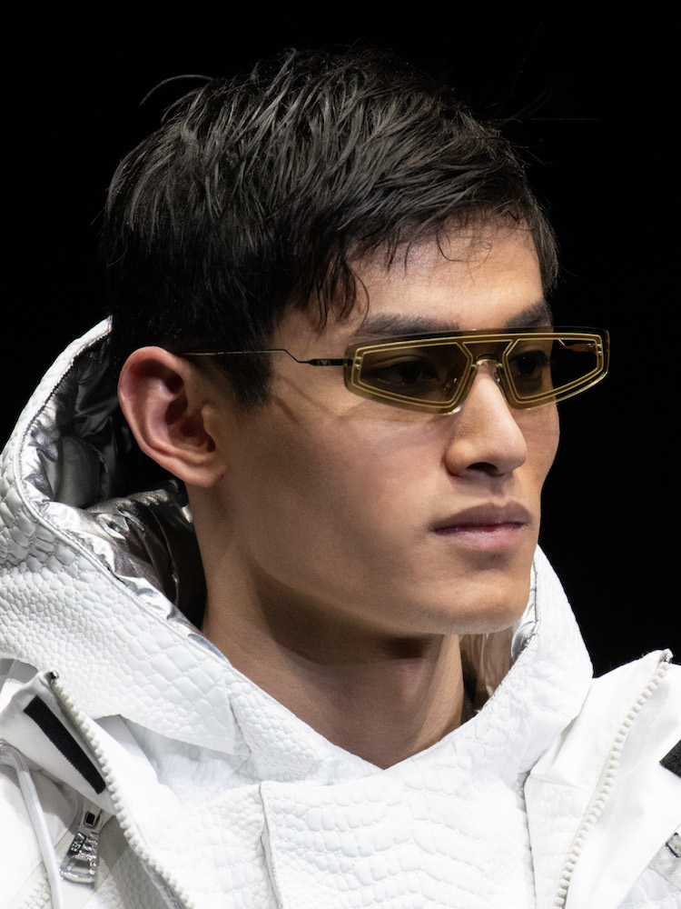 Imprescindibile l’occhiale da sole anche d’inverno, che si ispira allo sport e si trasforma in mascherine con montatura in acetato che avvolgono il viso o celebra gli anni 90 con forme minimali, affilate e lenti nere o fumo.
