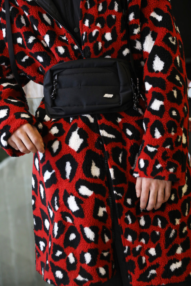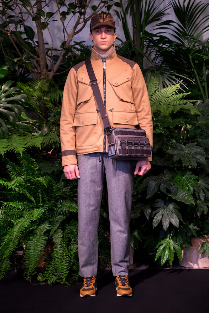 MSGM fa sfilare in passerella il sartoriale e lo sportswear: cappotti doppiopetto sono stretti in vita da marsupi tecnici portati come cinture