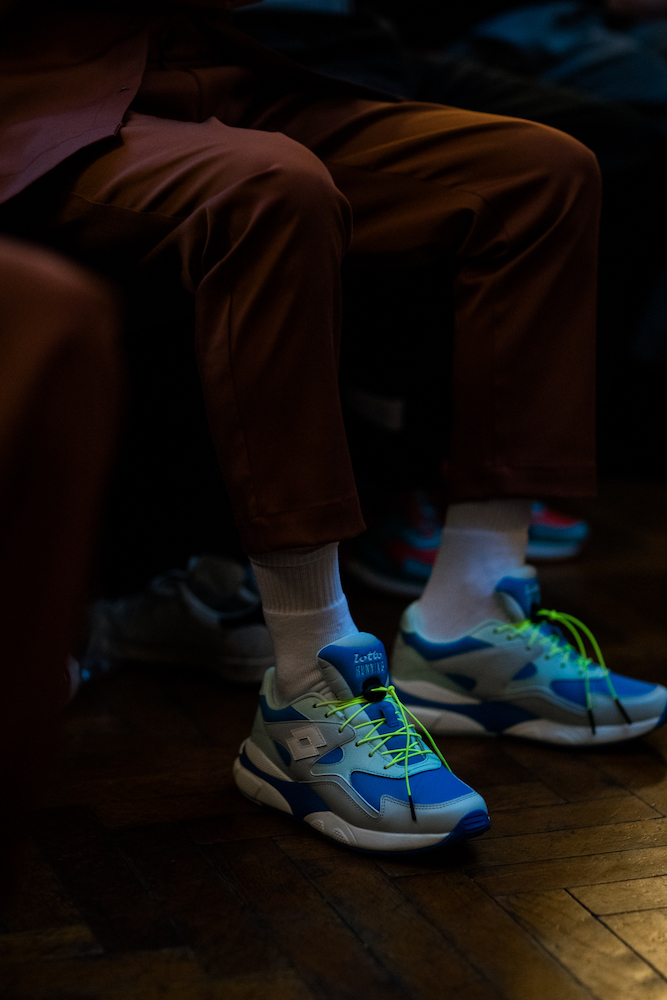 Per la sua prima sfilata durante la Milano Moda Uomo, Valerio Farina, fondatore e designer di Numero00, porta in passerella una capsule in collaborazione con Lotto. La sneaker STABY OG, in tre varianti colore, si basa su una delle tecnologie più iconiche dell’azienda veneta, il Syn-Pulse, che garantisce allo stesso tempo assorbimento dell’impatto, ritorno di energia e stabilità. In più, il motivo ad archi presente nel sottosuola viene riproposto all over sui capi dall’evidente matrice sportswear