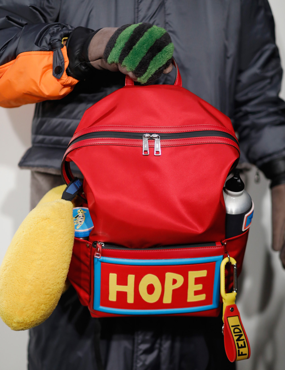 Si proietta verso un futuro ottimista Fendi, che fa sfilare zani dai colori pop, con dettagli sportivi e parole universali che risaltano come slogan di speranza. Mentre l’estetica si ripulisce e torna all’essenza della funzionalità nei backpack sulla passerella di Emporio Armani, che attraversano tutti i toni freddi del nero, e in quelli di Valextra, che quest’anno celebra l’80° Anniversario con una collezione All-White.