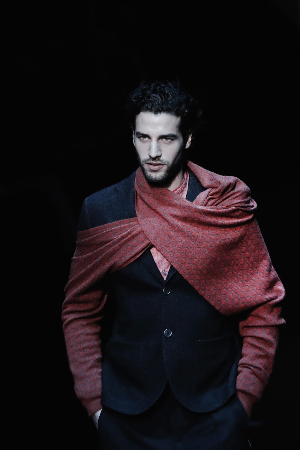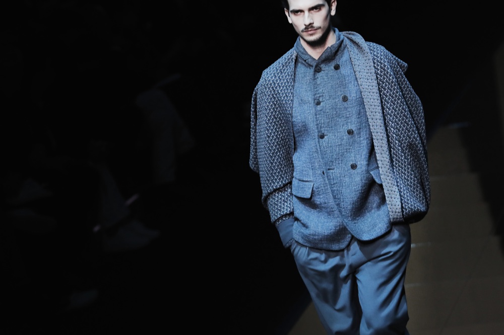 Giorgio Armani – Tocca sempre a lui, a Re Giorgio, chiudere (in bellezza) la settimana della moda meneghina. Ed ecco così Giorgio Armani, una collezione decisa che sa dove si sta dirigendo l’esigenza maschile. Armani conferma ancora una volta di riuscire a intuire in anticipo il progresso e l’evoluzione della moda. Di immettersi, in corsia preferenziale, in quel flusso unidirezionale in cui le forme, le linee, i tessuti e i tagli stanno procedendo. Bandita la rigidità, la scena è tutta, nuovamente, per il relaxed fit. La figura maschile è vigorosa, indossa pellicce con volumi da yeti, grandi sciarpe a manica che si incrocia sul petto, cappotti shearling da portare con camicie dal collo sciallato, felpe con cappuccio come sottogiacca, giacconi cardigan in maglia e blazer in velluto verde come tavoli da biliardo.