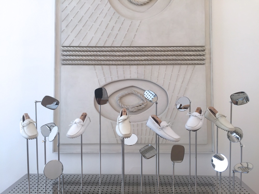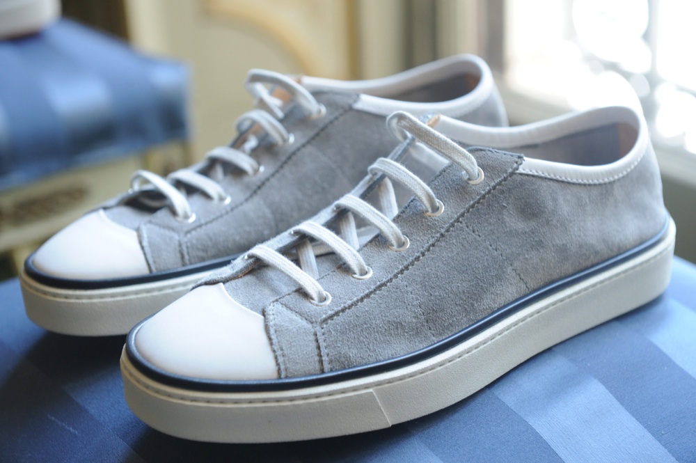 Se invece si punta lo sguardo verso i piedi dell’uomo della prossima stagione si scorpono nuove declinazioni delle più classiche delle calzature maschili. Church’s riprende la forma del Pembrey arricchito da una frangia larga e nappine sulla parte alta della tomaia per il nuovo mocassino Oreham. Un must dello stile british con un tocco di stile italiano. Tod’s tinge il suo mocassino driver con pennellate di colore che ne esaltano il pellame mentre Santoni destruttura sandali e ciabatte, le alleggerisce donandogli una forma elegante, minimale. Le tomaie in pelle di vitello o coccodrillo sono arricchite dalla doppia fibbia, come le double monk dipinte a mano, must della maison. Le sneaker si declinano in nuovi colori, i toni dei blu e degli azzurri dominano anche sulle calzature.